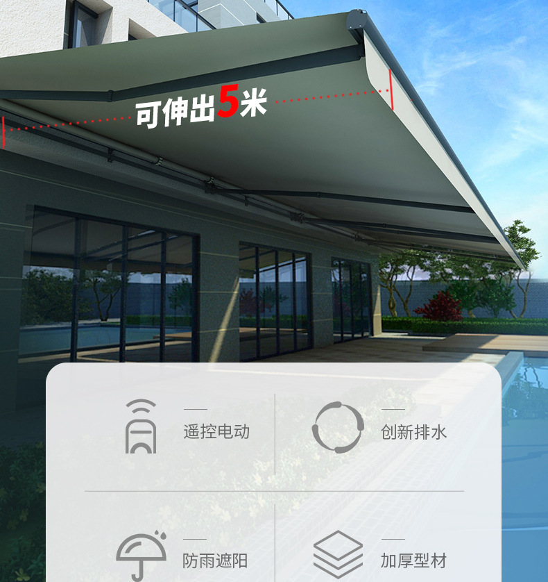 Shuncaida 대형 전기 개폐식 천막 저택 자동 원격 제어 접이식 캐노피 빌라 안뜰 홈 천막