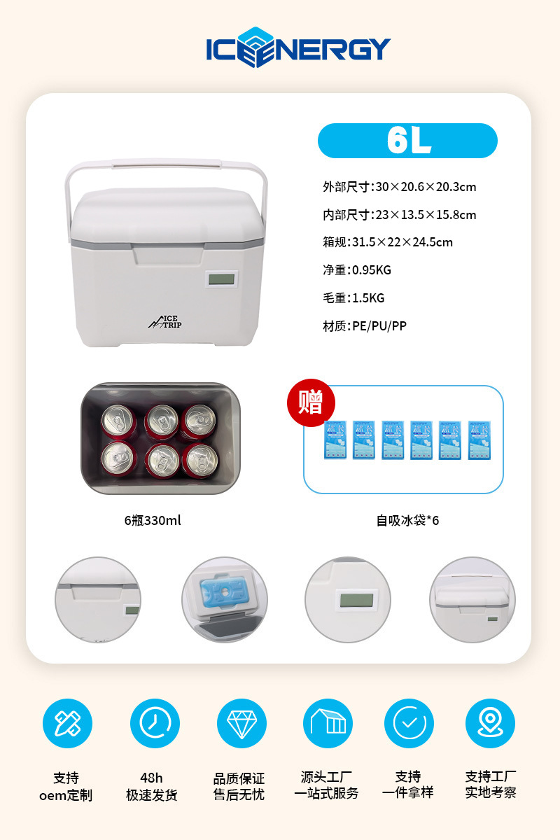 • 6L 온도계가없는 흰색 + 150ml 아이스 박스 * 1 + 아이스 백 * 5