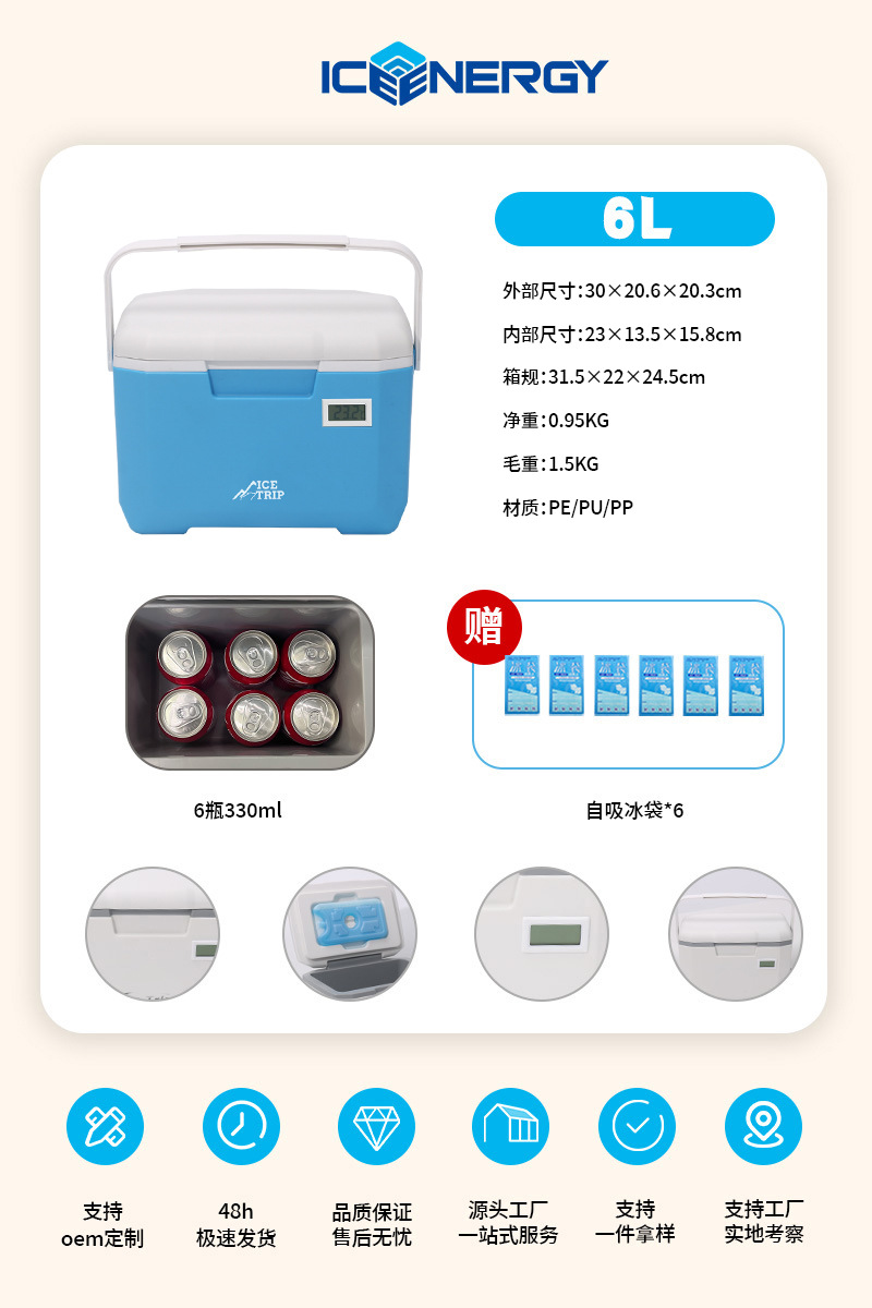 • 6L 블루 온도계 + 150ml 아이스 박스 * 1 + 아이스 백 * 5