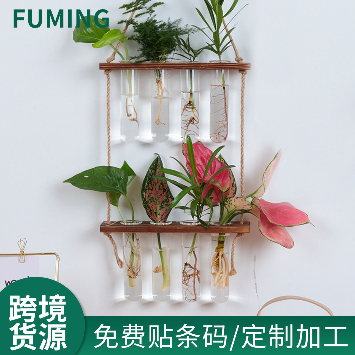 크리 에이 티브 간단한 벽 교수형 수경 더블 레이어 교수형 유리 테스트 튜브 녹색 식물 꽃꽂이 벽 펜던트스토어 가기