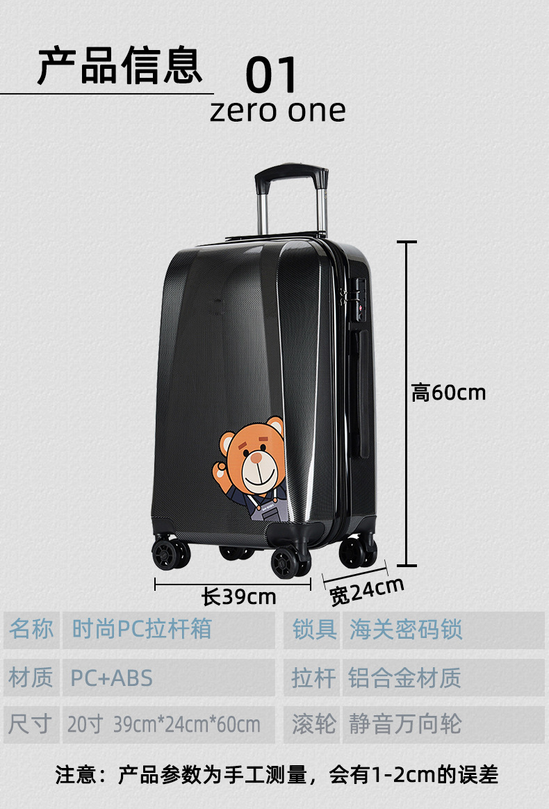 재고 4S 자동차 선물 트롤리 케이스 보험 곰 그물 빨간 탑승 케이스 22 인치 PC 범용 휠 학생 수하물 케이스