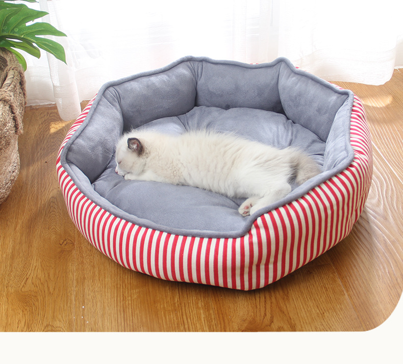 뉴 스트라이프 사계절 반려동물 제품 중소 개 고양이 둥지 풀 에지 고탄력 PP 면 애완 동물 둥지 매트스토어 가기