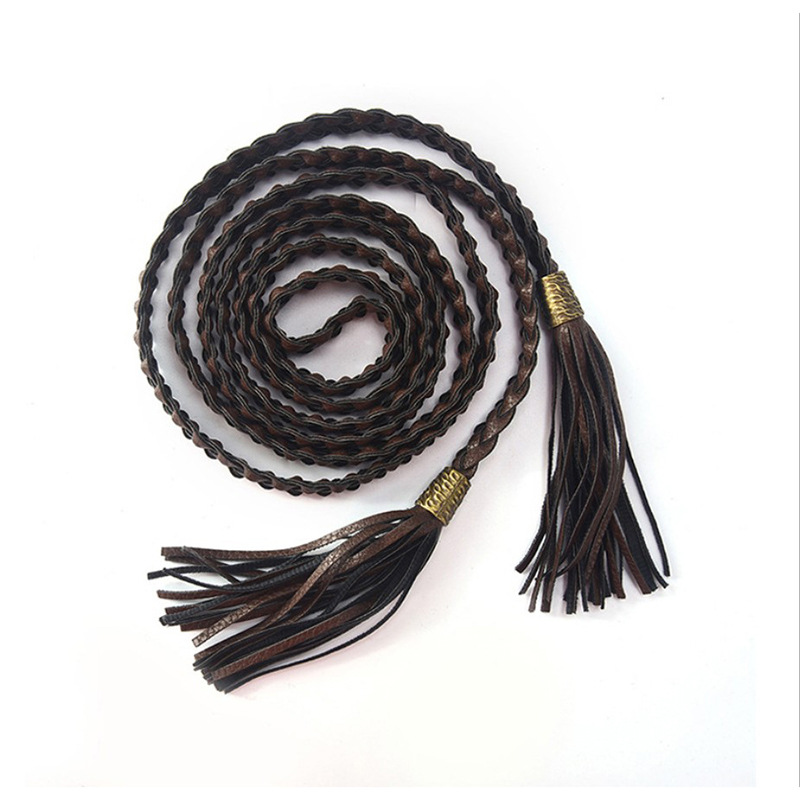 크로스보더 패션 심플한 프린지 땋은 벨트 드레스 장식용 블랙 허리 체인 프린지 요소 가죽 벨트스토어 가기