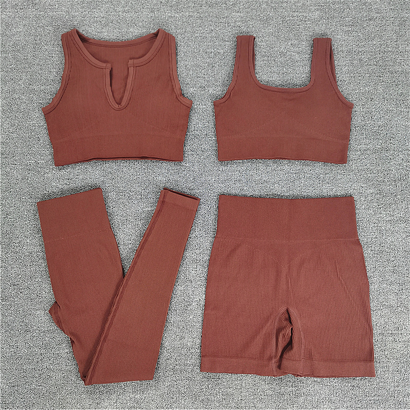 2021 아마존 유럽과 미국 인 실 니트 U-칼라 스퀘어 칼라 조끼 반바지 바지 4 개의 요가 의류 세트