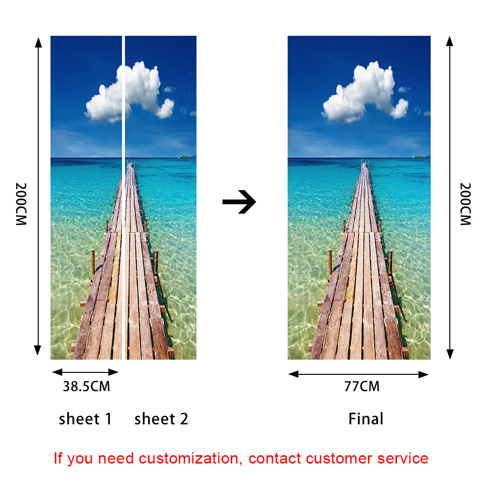 새우 피부 공급 푸른 하늘 흰색 구름 푸른 바다 패턴 도어 스티커 자체 접착 이동식 벽 스티커 거실 침실 리노베이션 장식