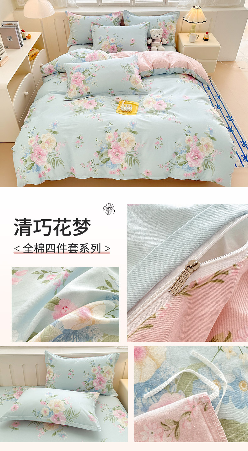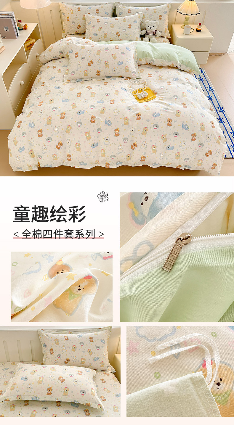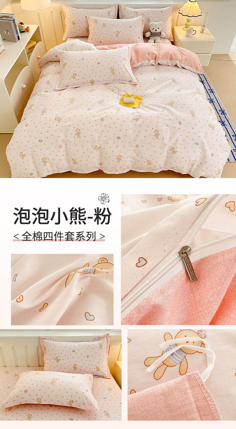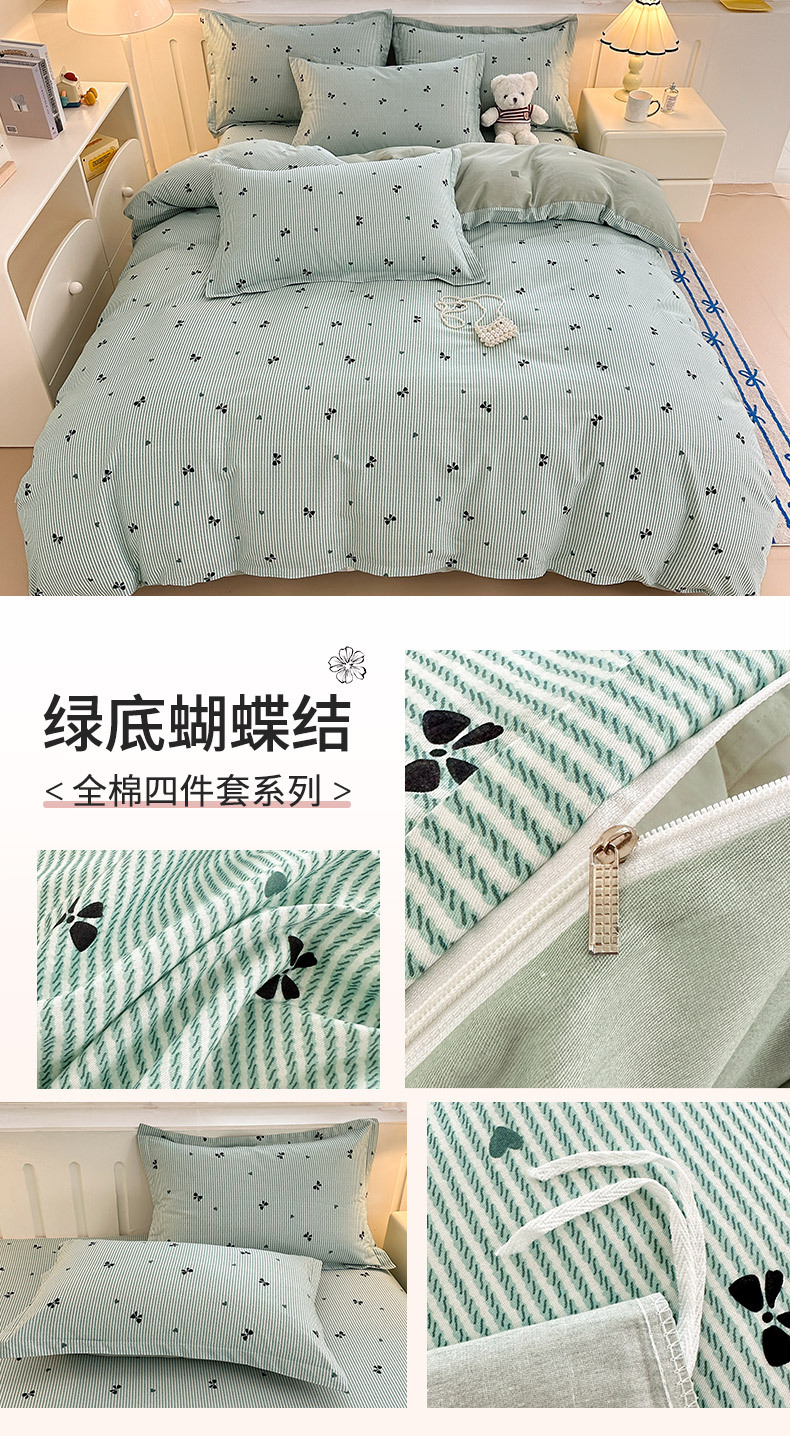 100 면 4 피스 코튼 킷 학생 기숙사 3 종 세트 싱글 더블 침대 시트 이불 커버 침구스토어 가기