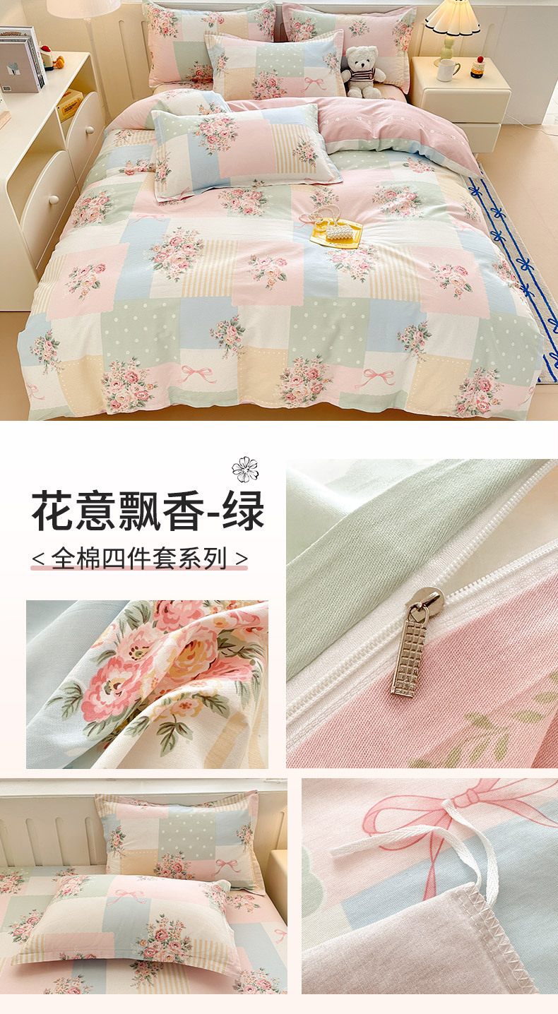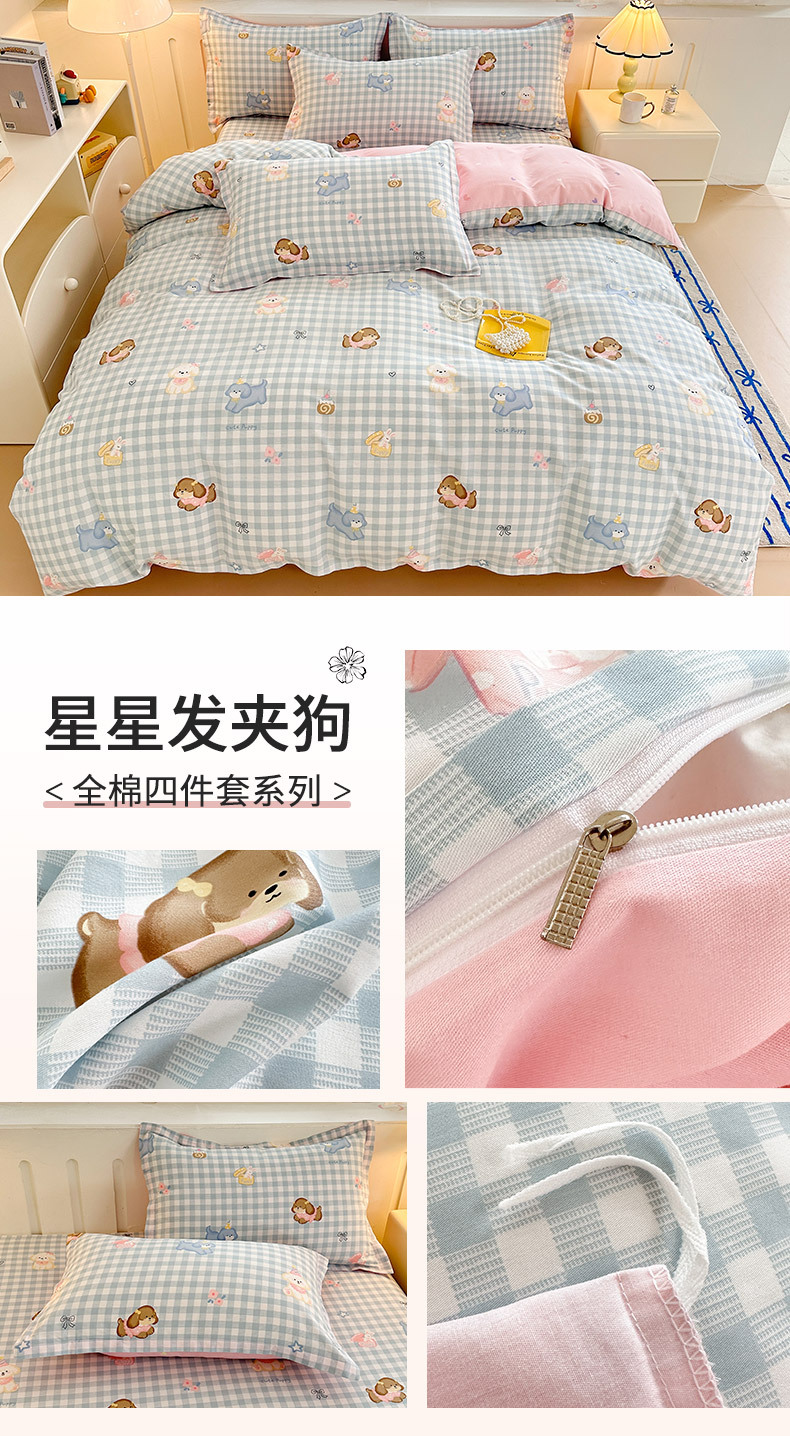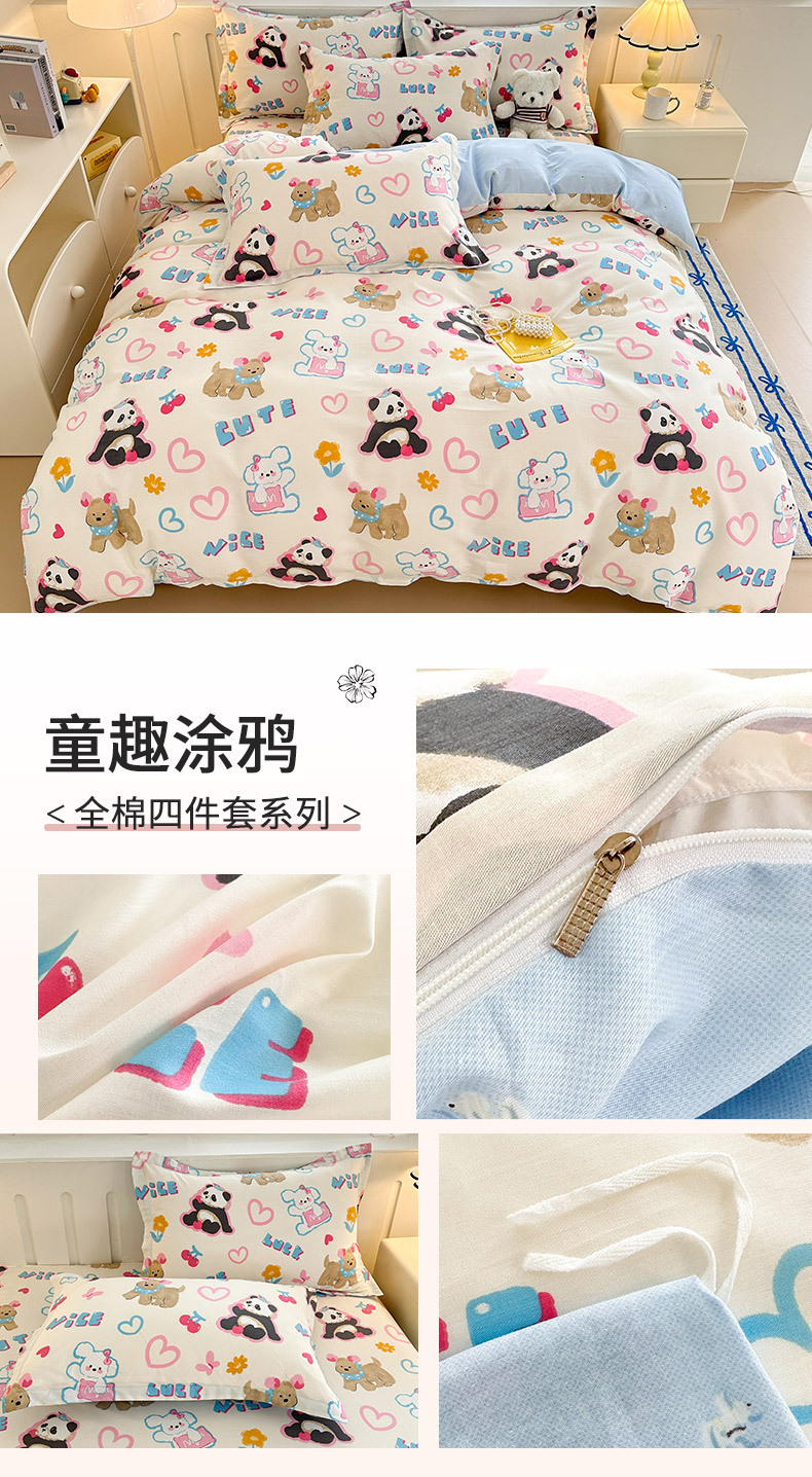 100 면 4 피스 코튼 킷 학생 기숙사 3 종 세트 싱글 더블 침대 시트 이불 커버 침구스토어 가기