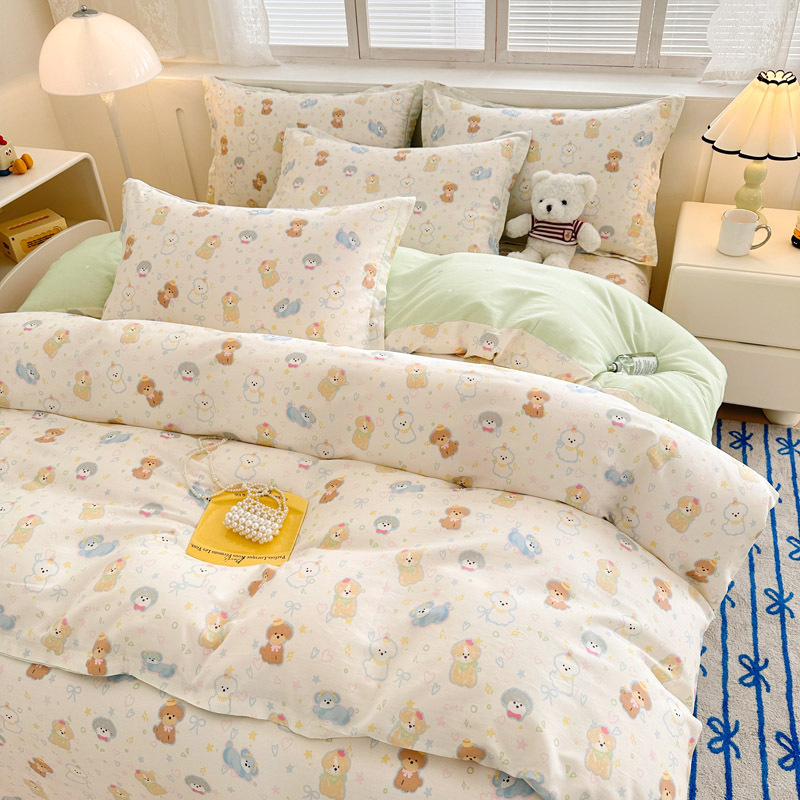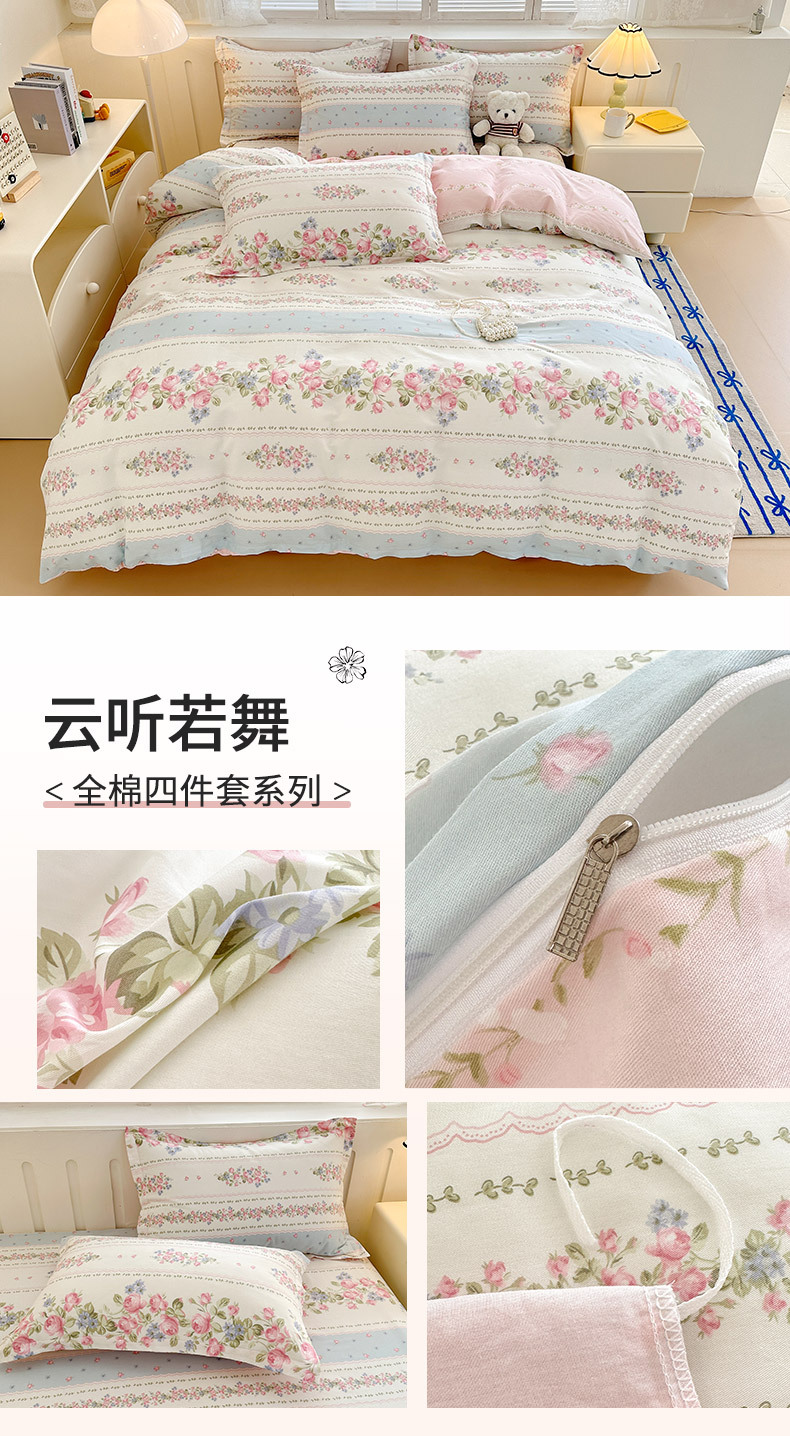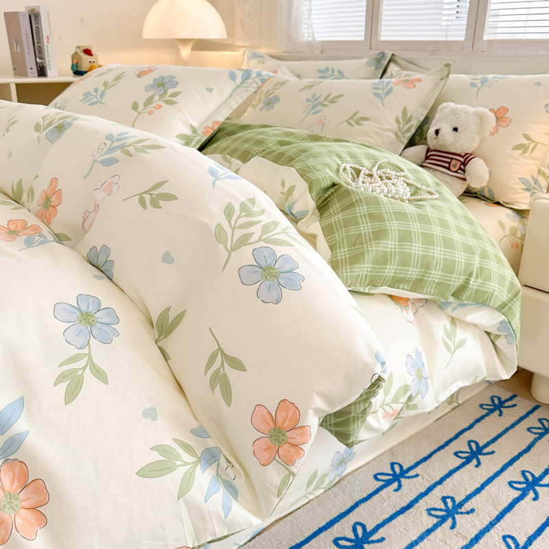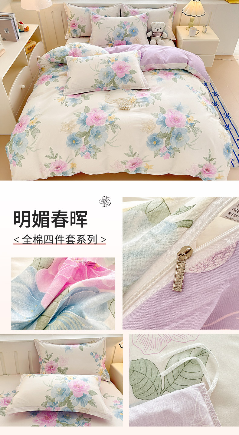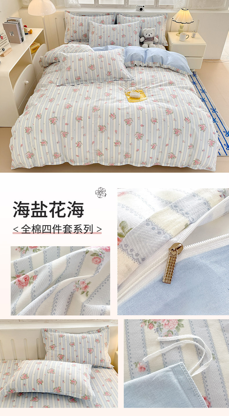 100 면 4 피스 코튼 킷 학생 기숙사 3 종 세트 싱글 더블 침대 시트 이불 커버 침구스토어 가기