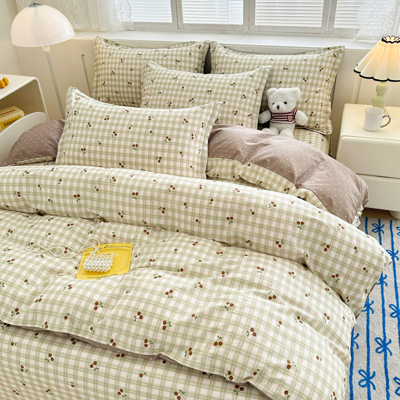 100 면 4 피스 코튼 킷 학생 기숙사 3 종 세트 싱글 더블 침대 시트 이불 커버 침구