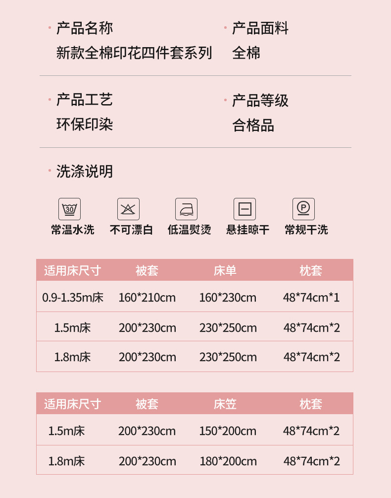 • 1.5-1.8m 4종세트[이불커버 200*230cm 침대시트 230*250cm]