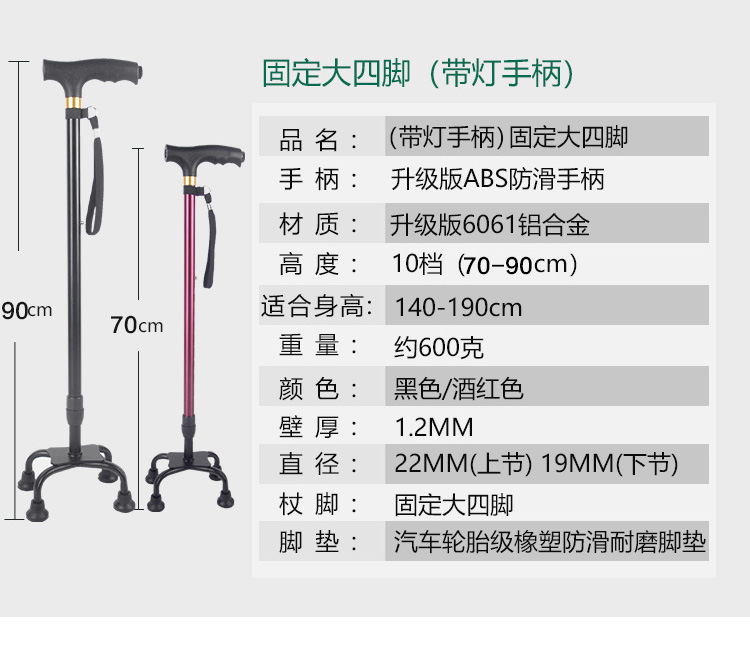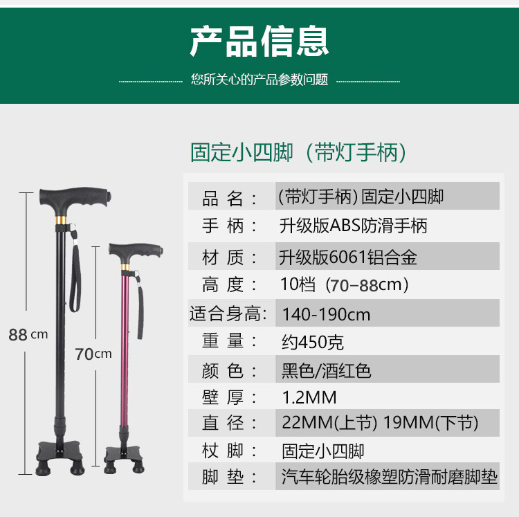 가벼운 텔레스코픽 미끄럼 방지 발 커버가 있는 노인을 위한 특수 목발, 노인을 위한 초경량 알루미늄 합금 4족 목발, 노인 용품