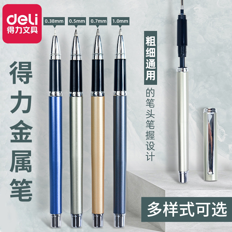 델리 S82 메탈 젤 펜 블랙 0.5mm 불릿 펜 영업 사무실 사인 펜 메탈 펜 도매