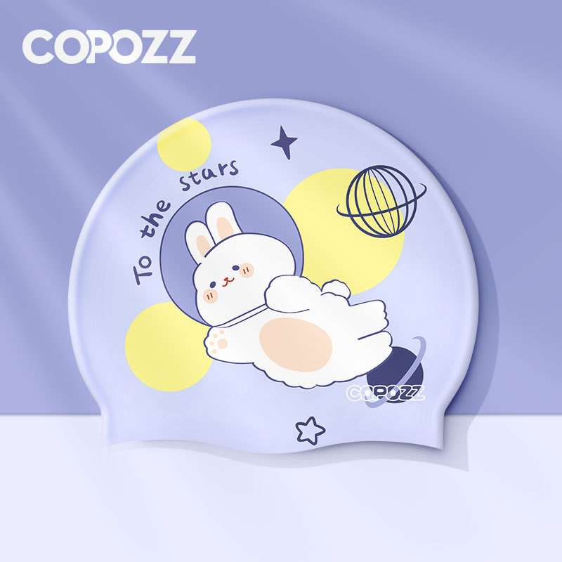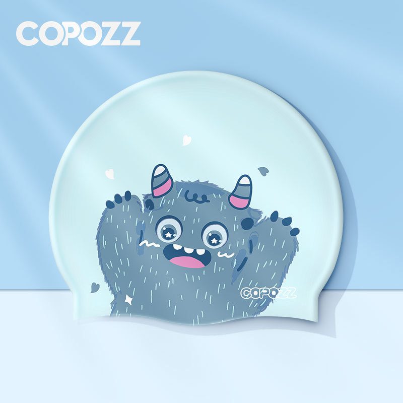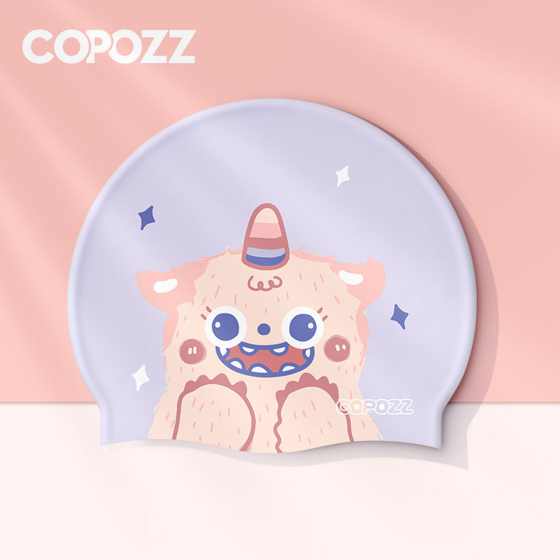 COPOZZ 어린이 수영 모자 소년과 소녀 실리콘 방수 편안한 긴 머리 귀여운 인쇄 수영 모자