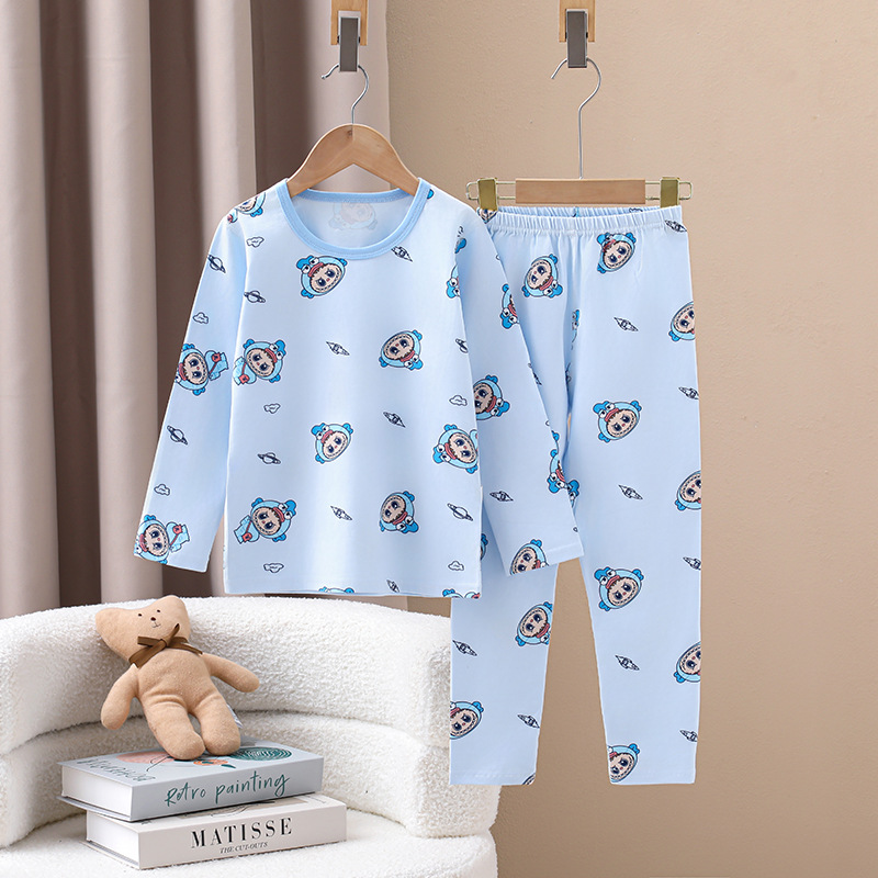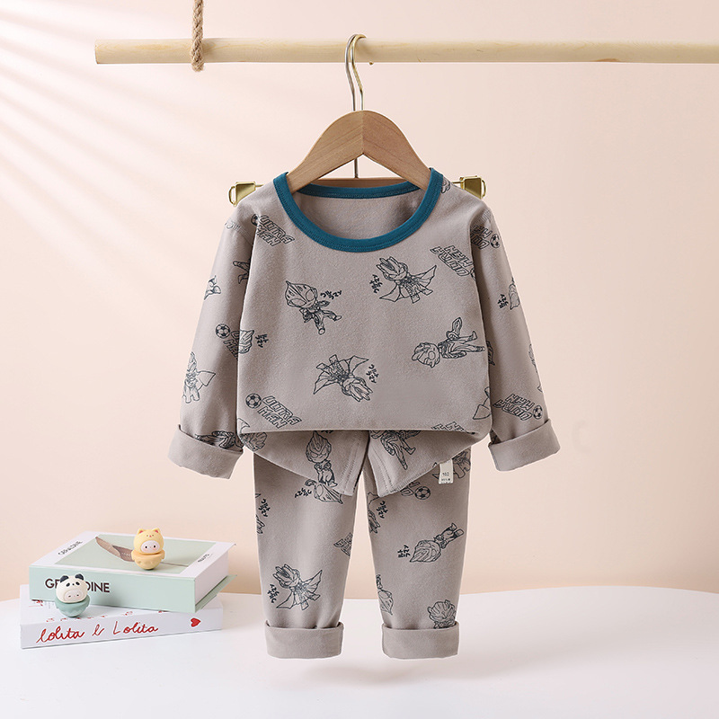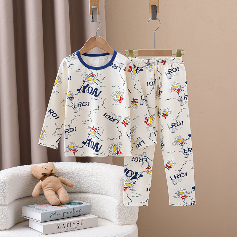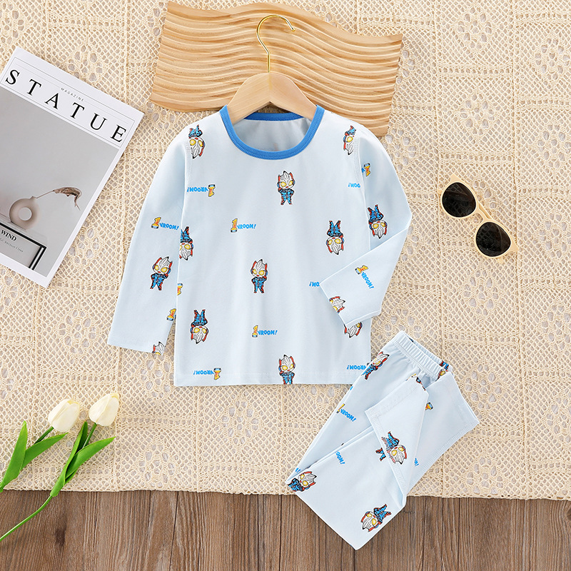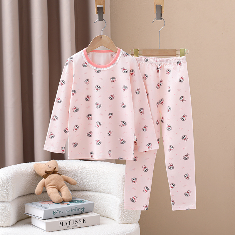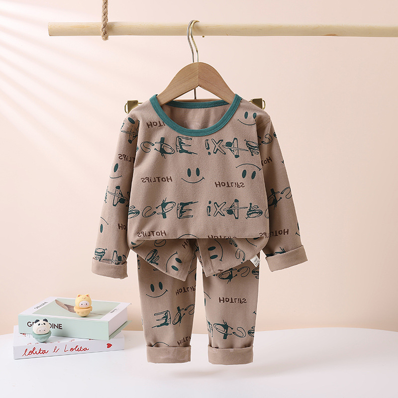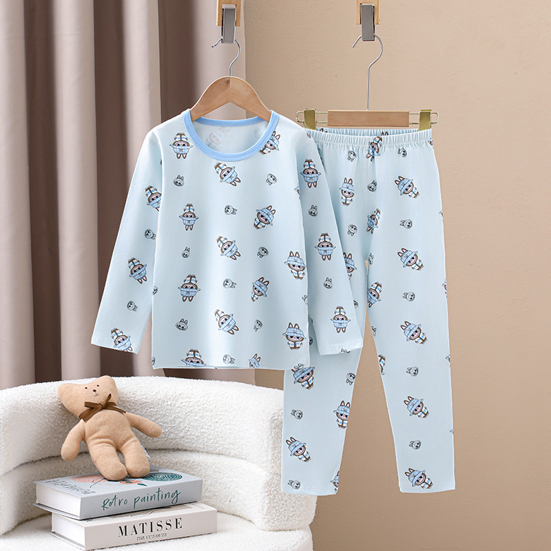 어린이의 새로운 라이크라 크루넥 세트 가을 옷 소년과 소녀를위한 긴 바지 어린이를위한 편안한 뼈없는 가정 옷