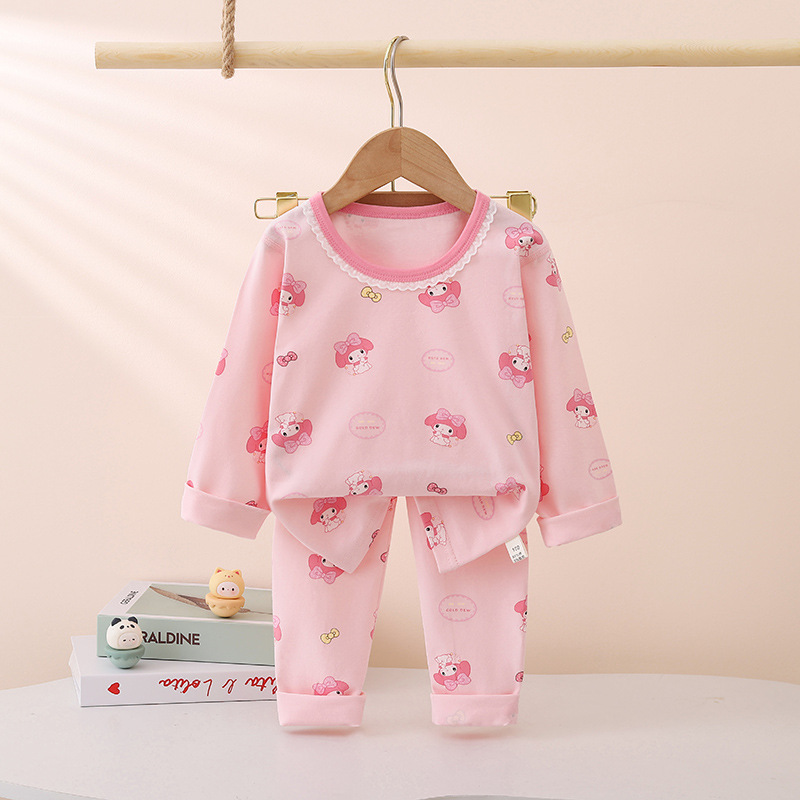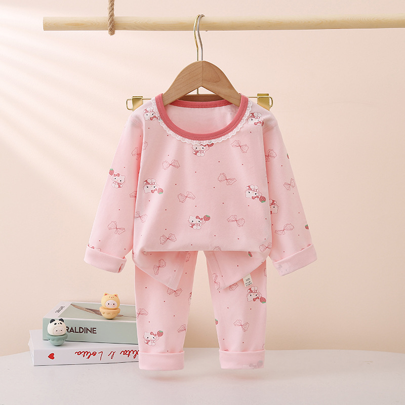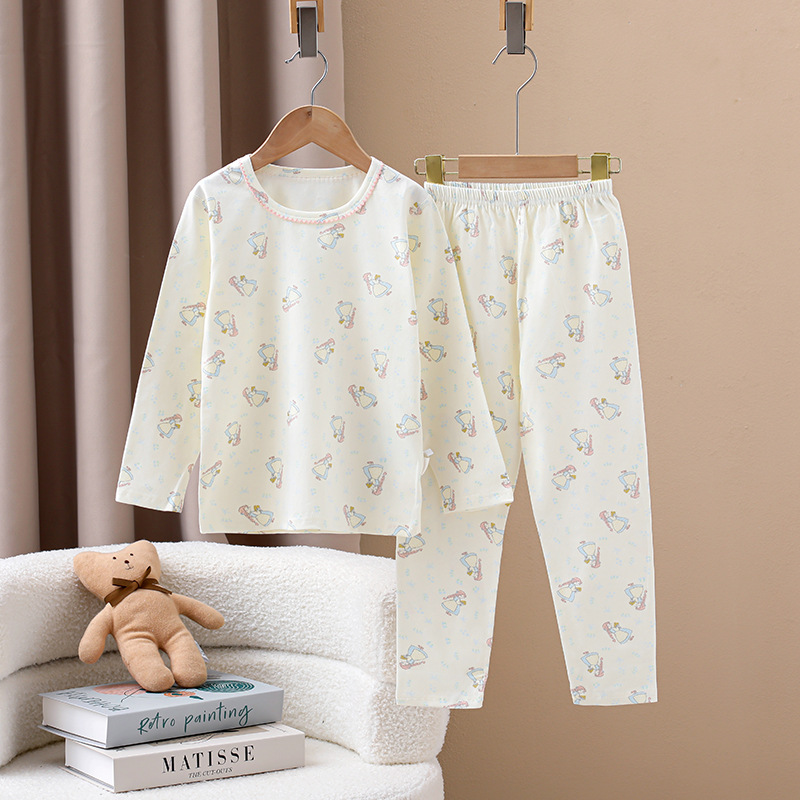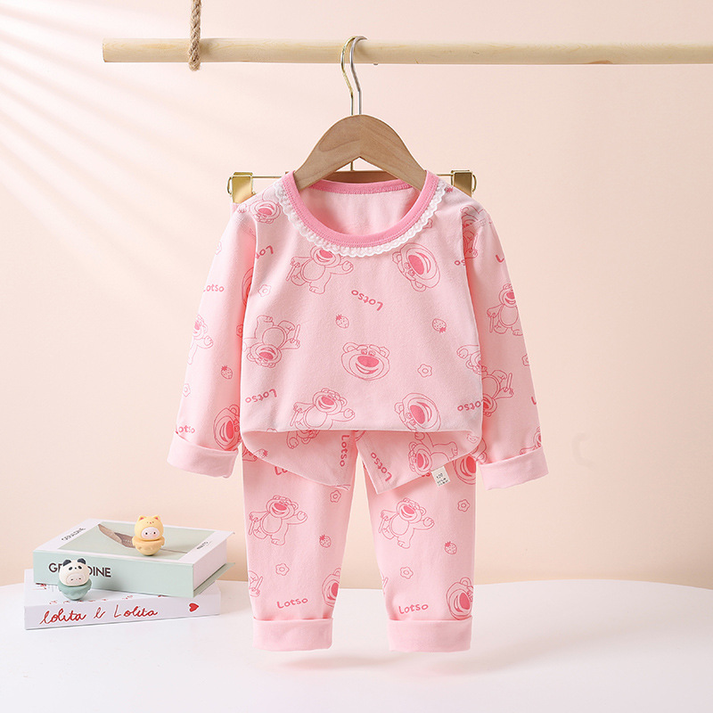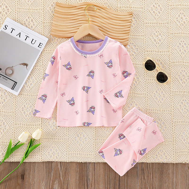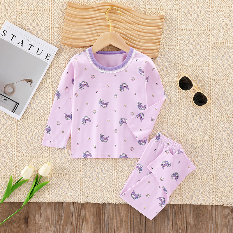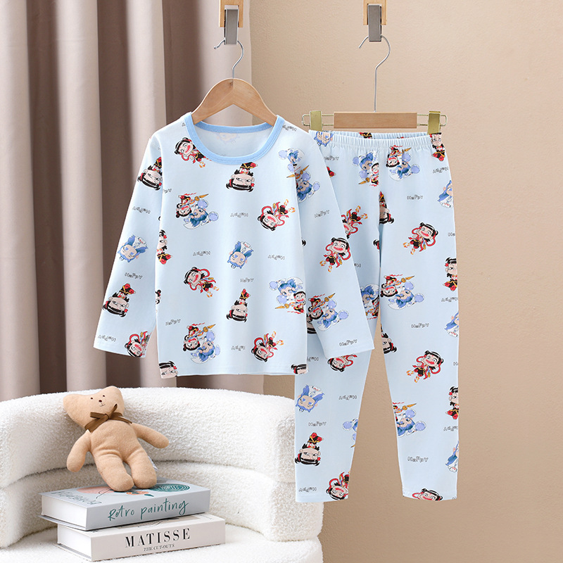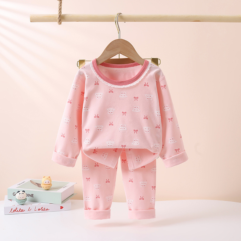 어린이의 새로운 라이크라 크루넥 세트 가을 옷 소년과 소녀를위한 긴 바지 어린이를위한 편안한 뼈없는 가정 옷