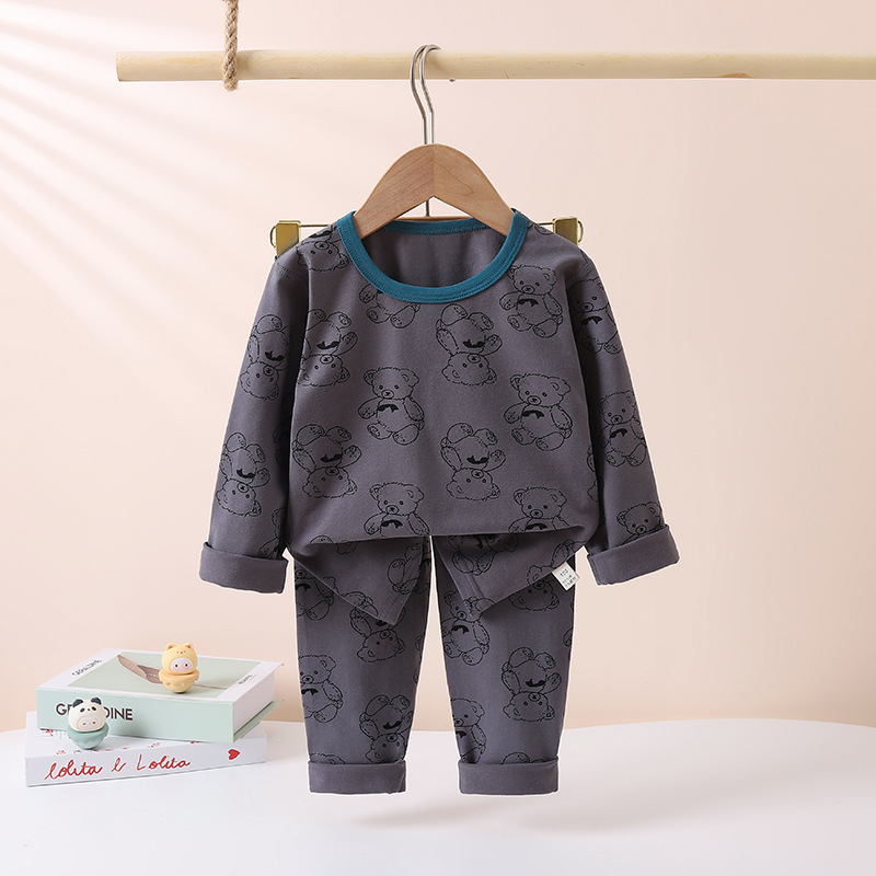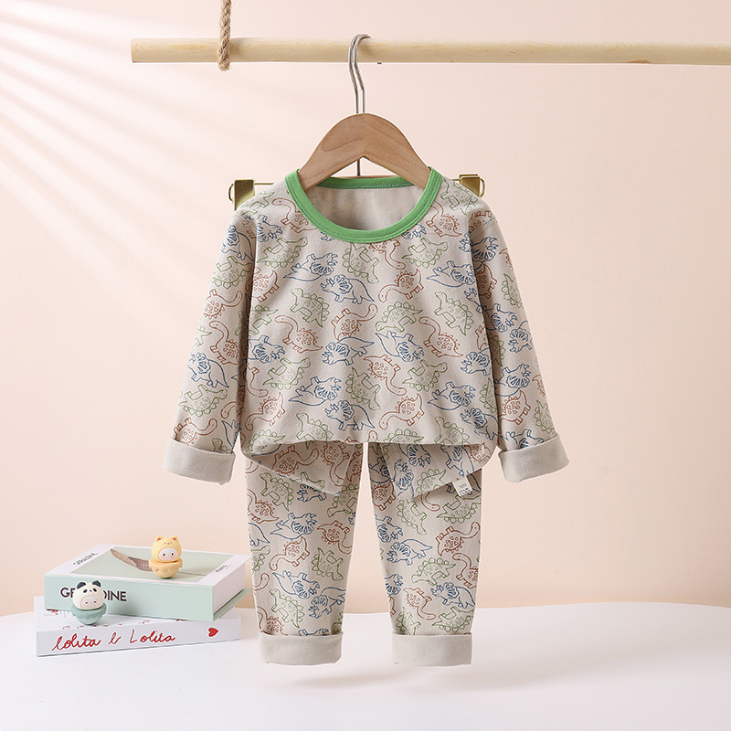 어린이의 새로운 라이크라 크루넥 세트 가을 옷 소년과 소녀를위한 긴 바지 어린이를위한 편안한 뼈없는 가정 옷스토어 가기
