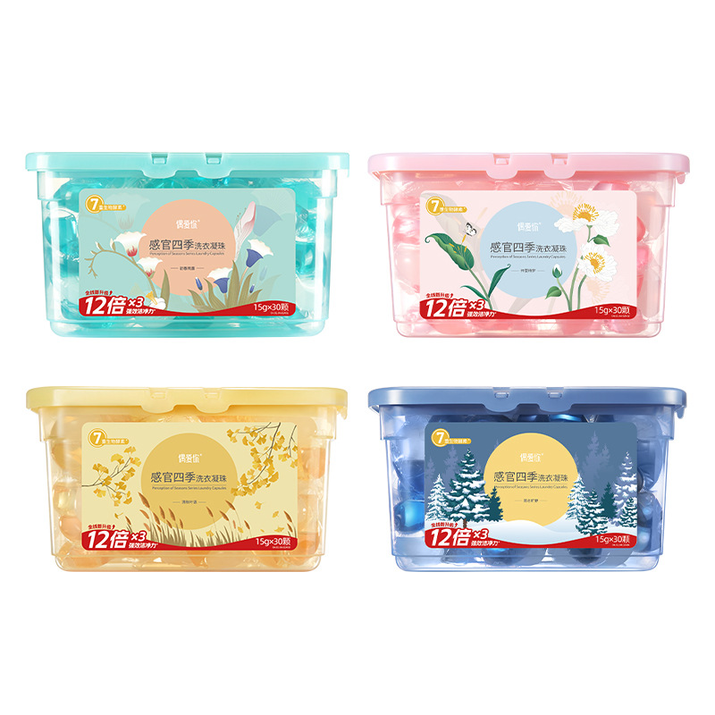 나는 당신의 감각을 사랑합니다 사계절 세탁 구슬 부드러운 보호 의류 향기 15g * 30 세트 세탁볼 생성 4 박스스토어 가기