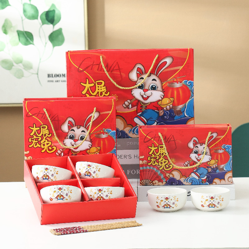• 4 그릇 4 젓가락 선물 상자 24 세트/상자