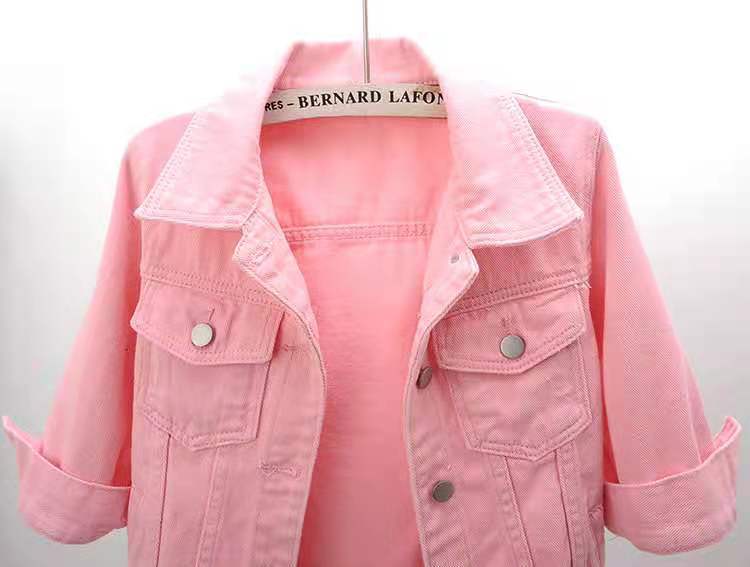 봄과 여름 한국 스타일 슬림핏 컬러 중간 소매 데님 코트 여성용 짧은 7 소매 재킷 양복 조끼 작은 숄 탑스토어 가기