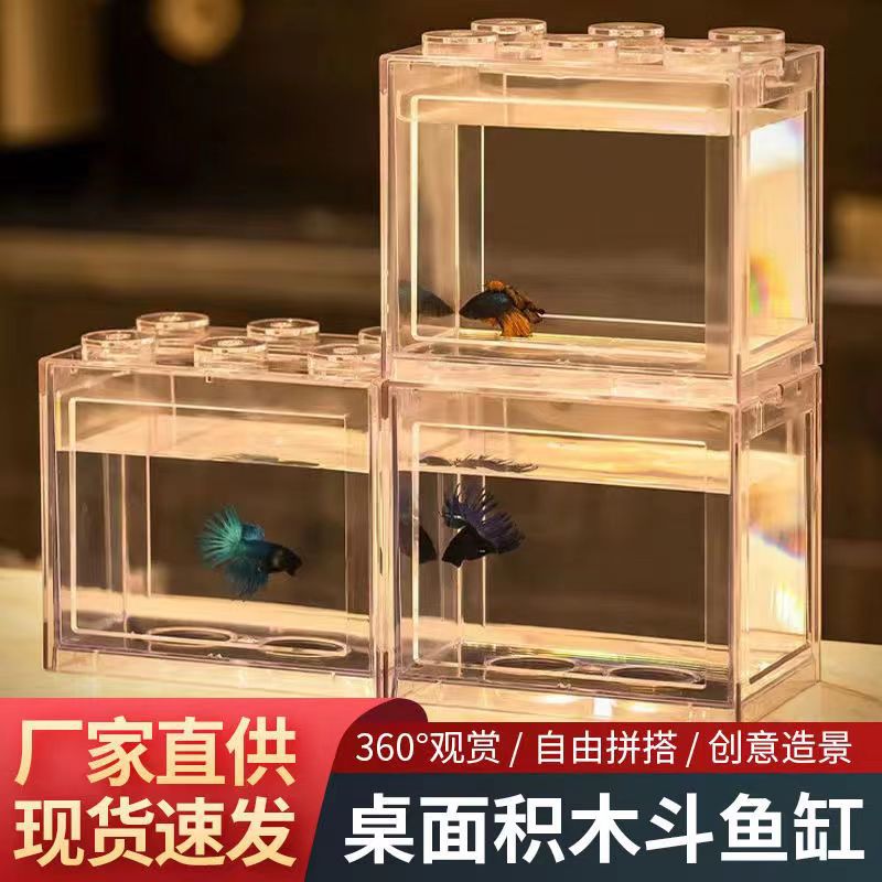 빌딩 블록 양동이 물고기 작은 어항 마이크로 생태 장식 어항 플라스틱 어항 파충류 상자 창조적 인 거북이 탱크스토어 가기