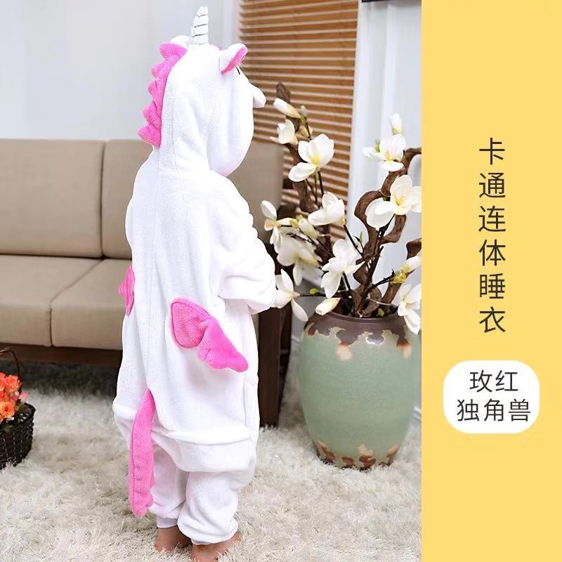 가을, 겨울 플란넬 잠옷 유니콘 커플 모델 두꺼운 어린이 만화 원피스 공룡 동물 가정 의류 도매