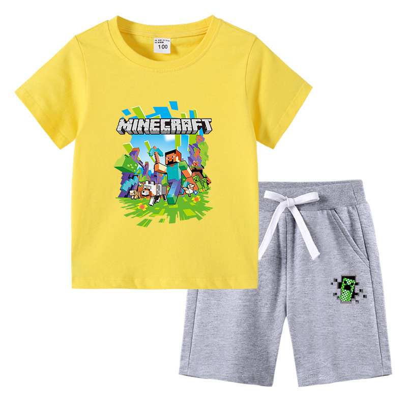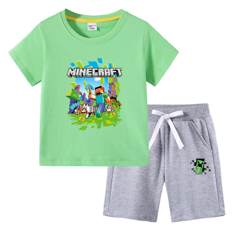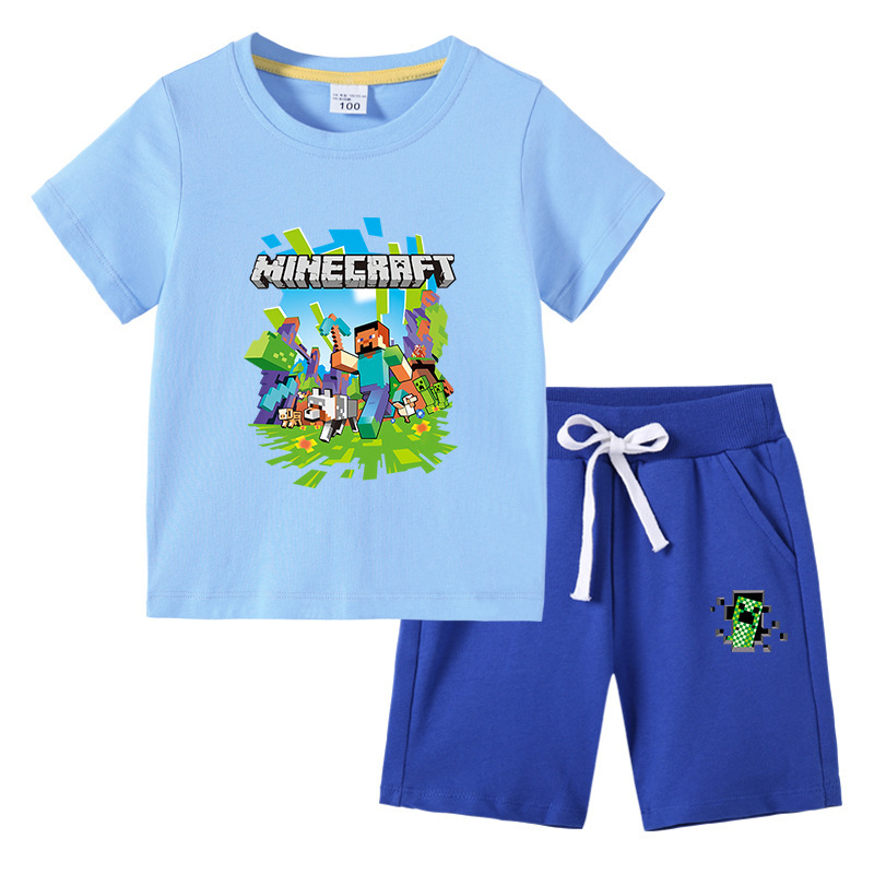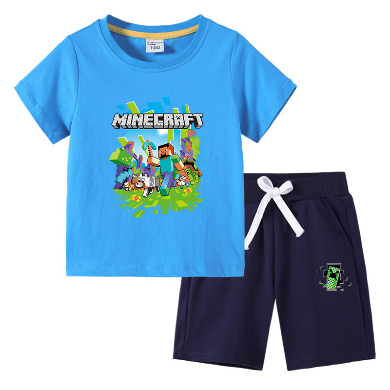 2023 아동 티셔츠 여름 새로운 대외 무역 아동복 한국 면 아동 반팔 바지 투피스 세트스토어 가기
