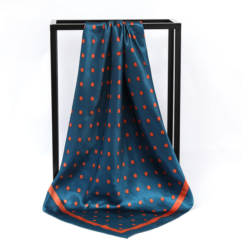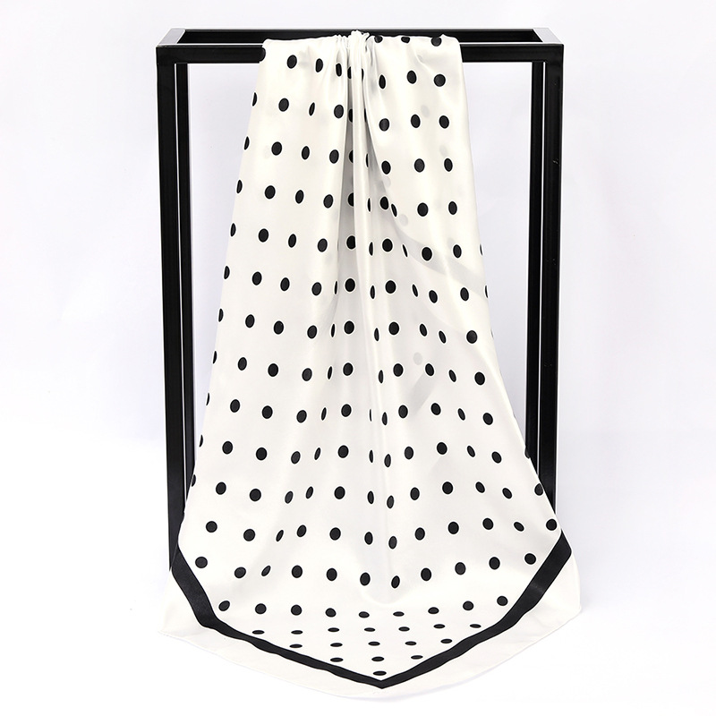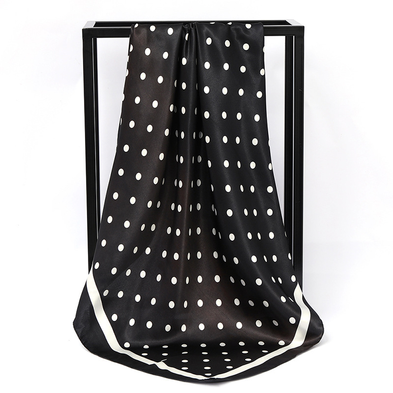 패션 물방울 무늬 인쇄 새틴 스카프 90cm 모조 실크 새틴 인쇄 대형 사각형 스카프 조커 스카프 제조 업체 도매스토어 가기