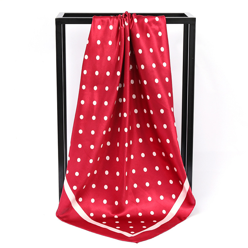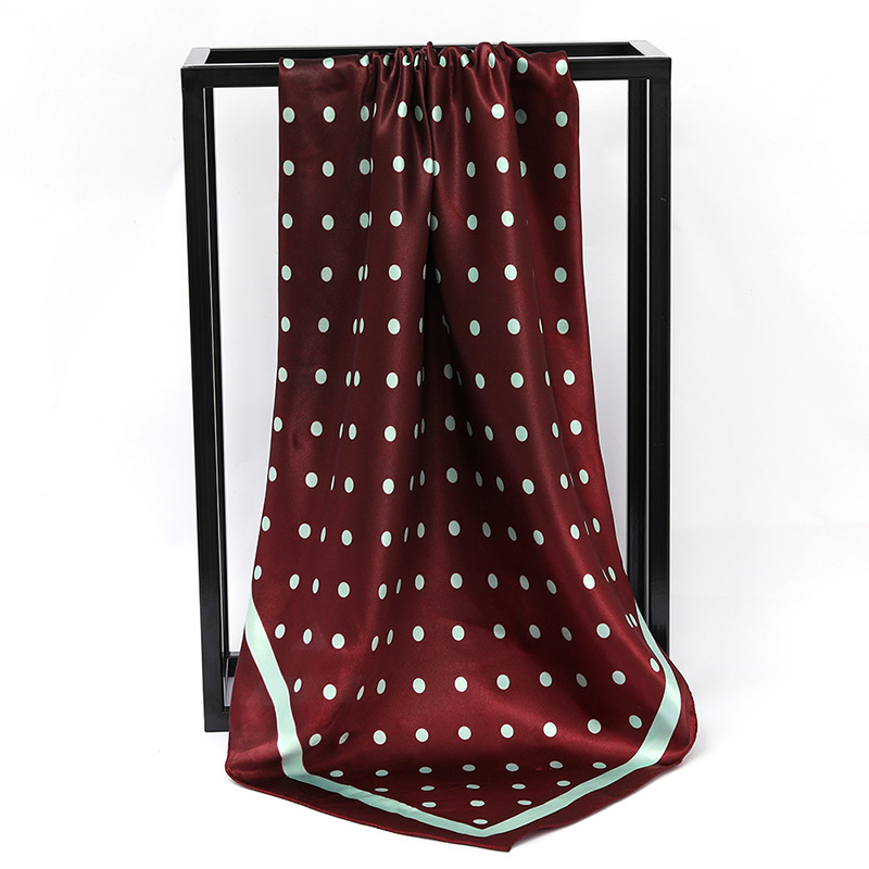 패션 물방울 무늬 인쇄 새틴 스카프 90cm 모조 실크 새틴 인쇄 대형 사각형 스카프 조커 스카프 제조 업체 도매
