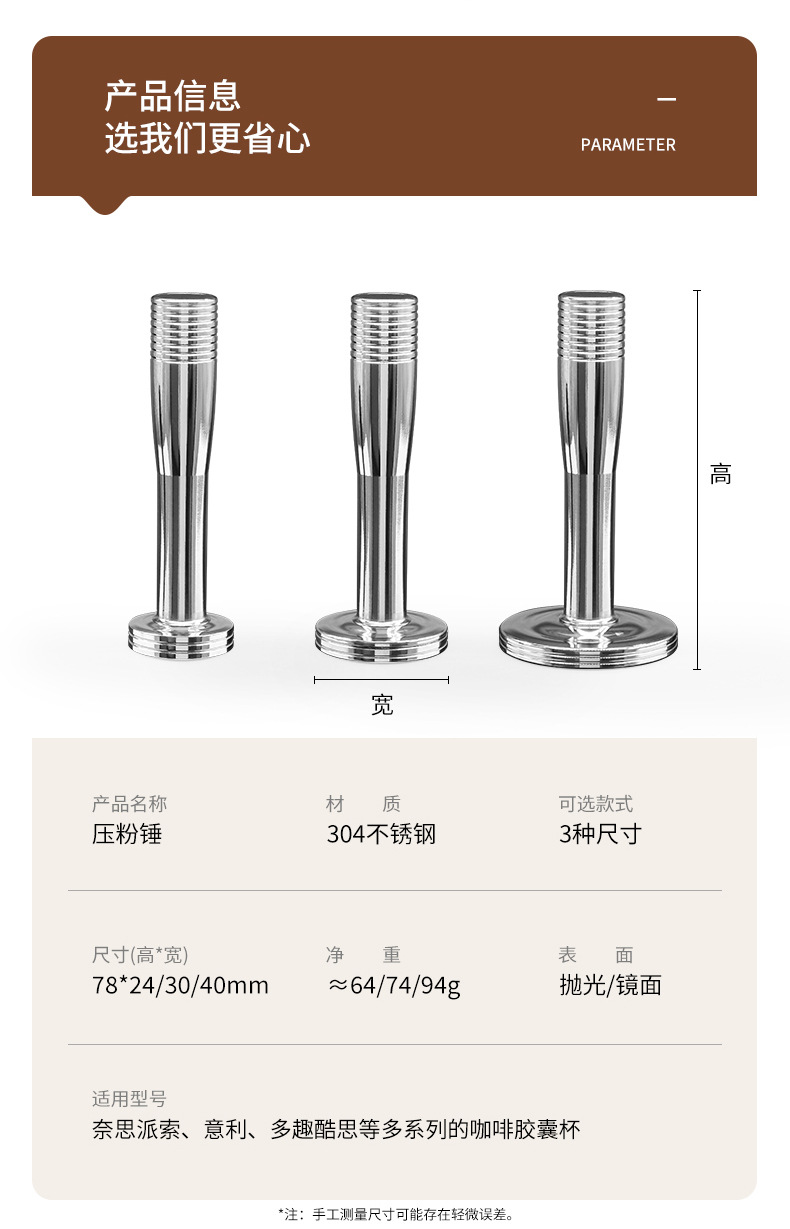 咖啡胶囊压粉锤 布粉器 压粉器 不锈钢 咖啡胶囊杯 24mm 30mm 40mm 实心 原力 粉锤 填压器