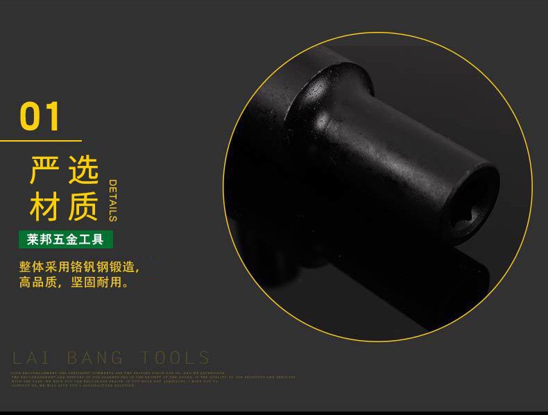 莱邦工具是厂家贴牌加工,专业汽修组套 ,家用组套。套筒类、套筒附件类、棘轮扳手类、镜面开口,镜面梅花,镜面两用扳手,两用镜面14件套,电泳两用14件套。珍珠镍两用14件套。普通两用14件。活口扳手、各种扳手。各种内六角、老虎钳、卡簧钳、迷你断线钳,螺丝刀等。价格合理,在消费者当中享有较高的地位,公司与多家零售商和代理商建立了长期稳定的合作关系,以多品种经营特色和薄利多销的原则,赢得了广大客户的信任。
