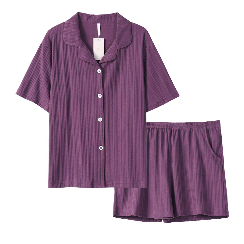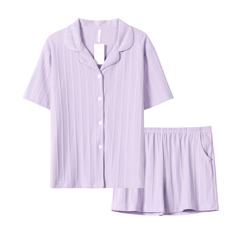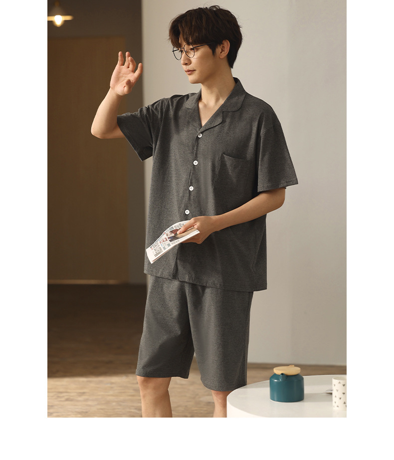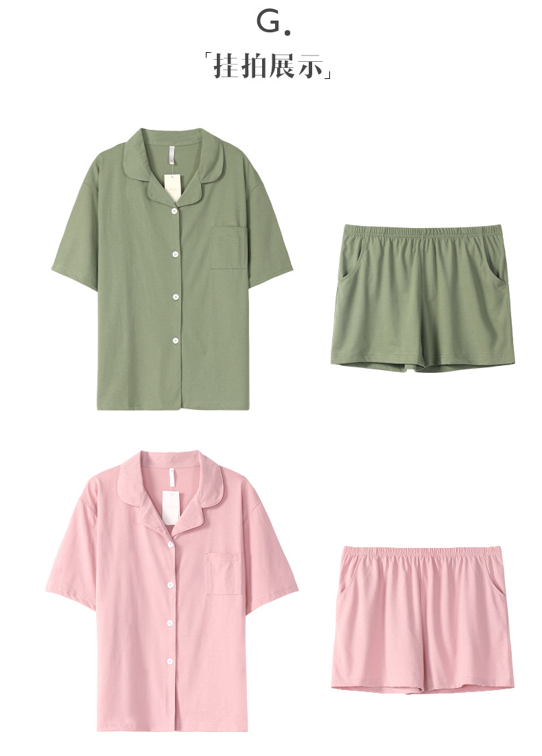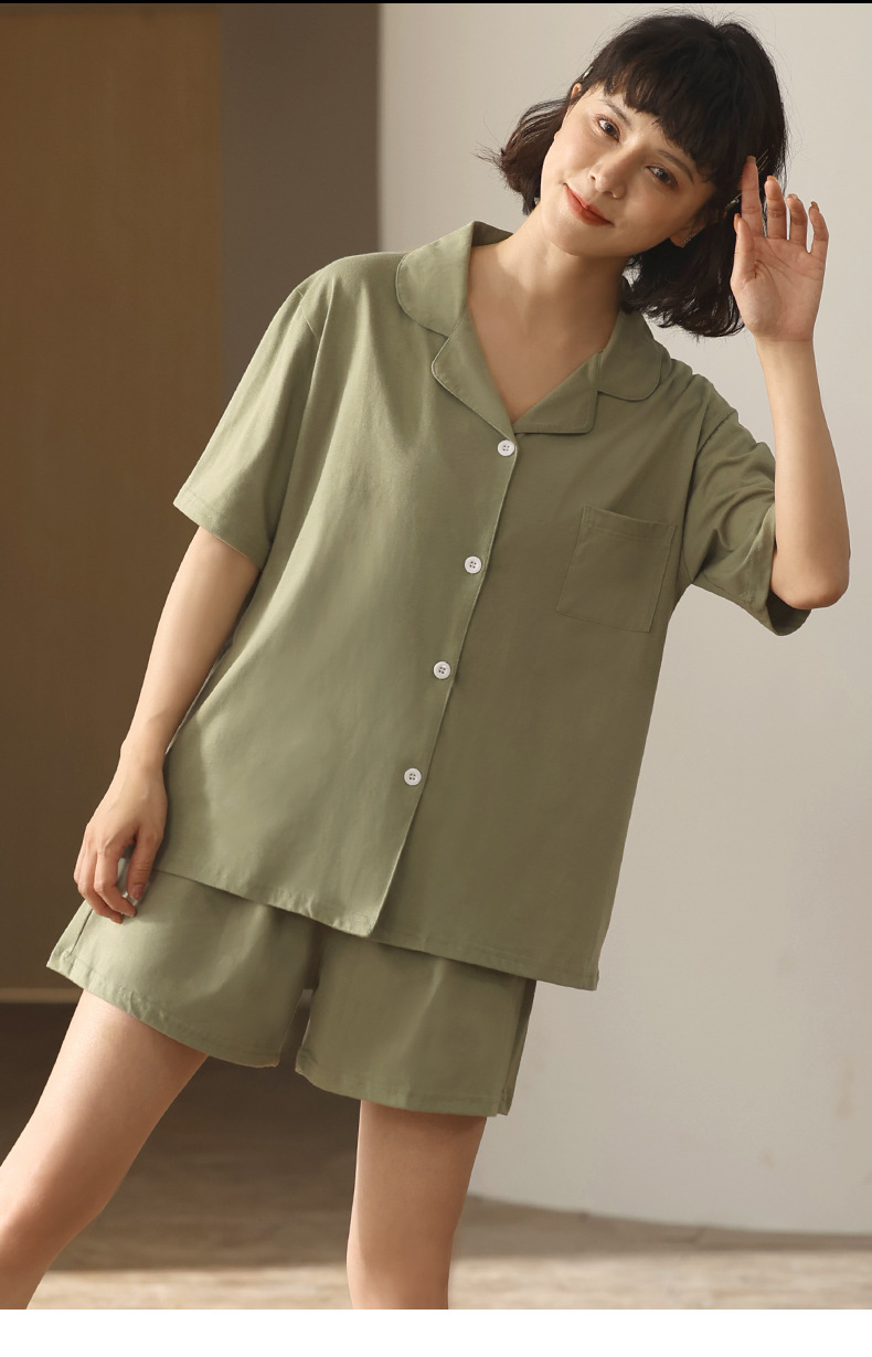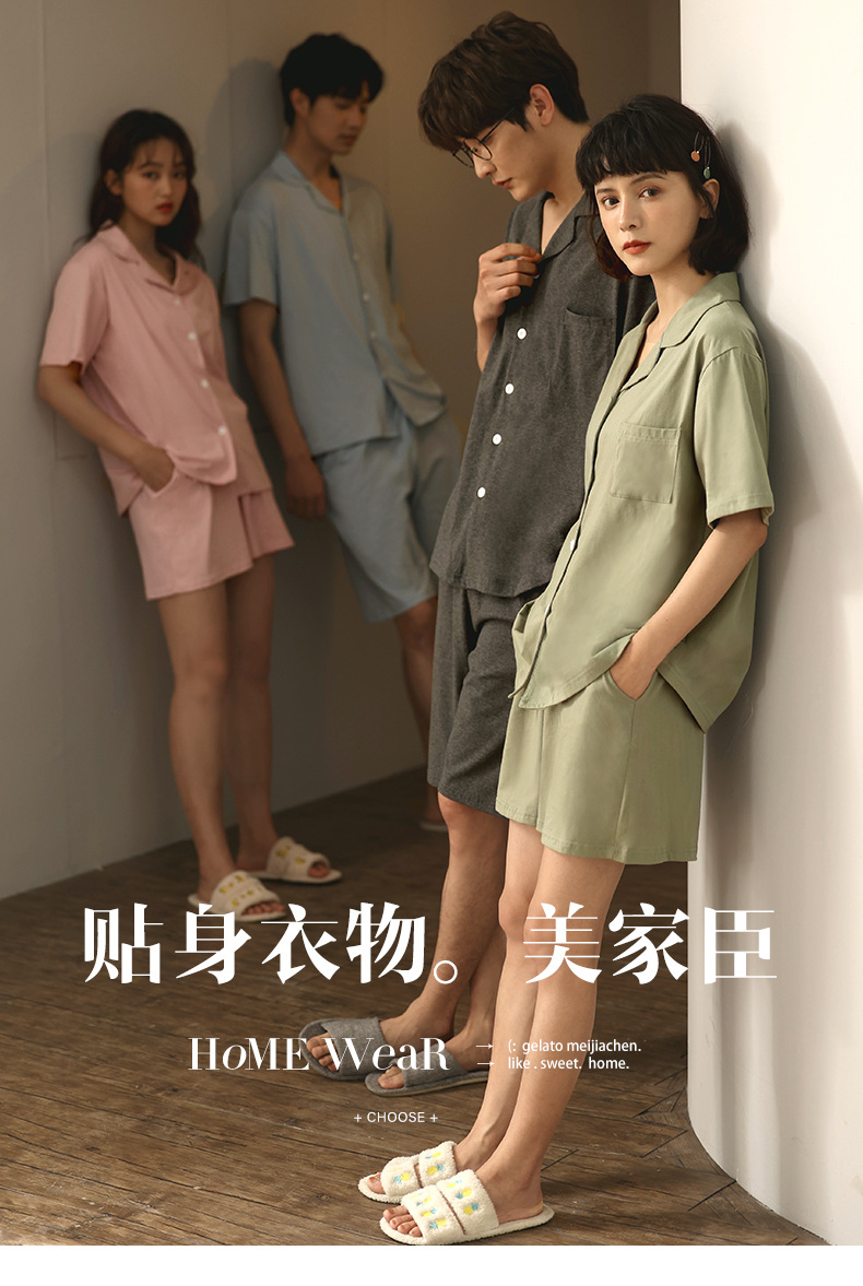 커플 잠옷 여자 여름 순면 얇은 반팔 반바지 봄과 여름 남자 단색 가디건 홈 의류 투피스 세트스토어 가기