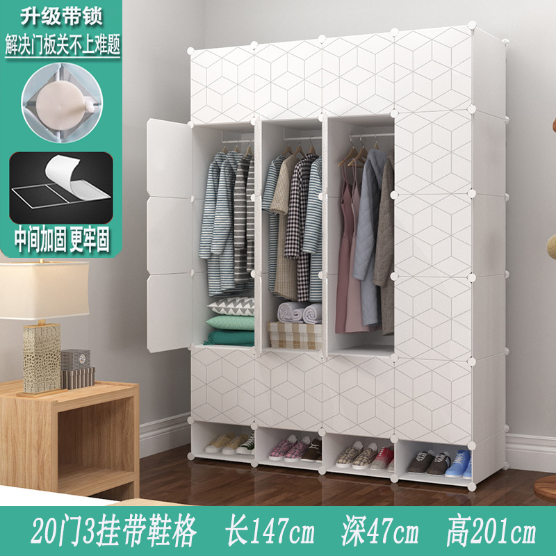 간단한 옷장 플라스틱 스틸 프레임 조립 된 옷장 단일 옷장 조합 이중 보관 캐비닛 간단한 현대 경제적