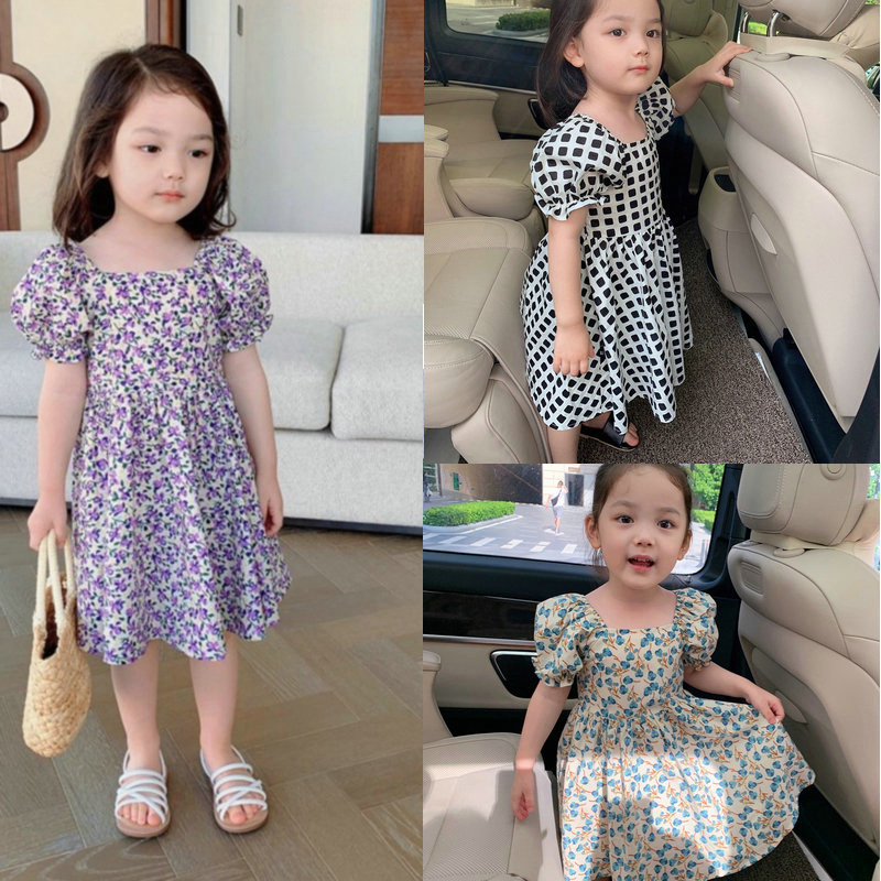 여아용 작은 꽃무늬 체크 원피스 2025 여름 의류 어린이 아기 여름 스타일리시하고 상큼한 반팔 원피스 트렌디스토어 가기