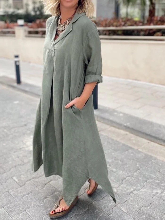 2020wish亚马逊ebay爆款欧美女装棉麻纯色宽松连衣裙