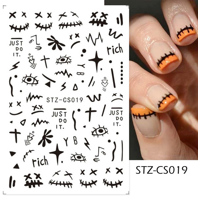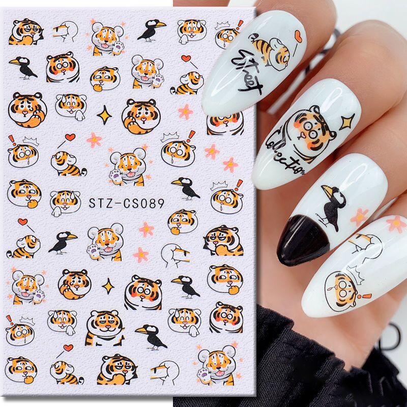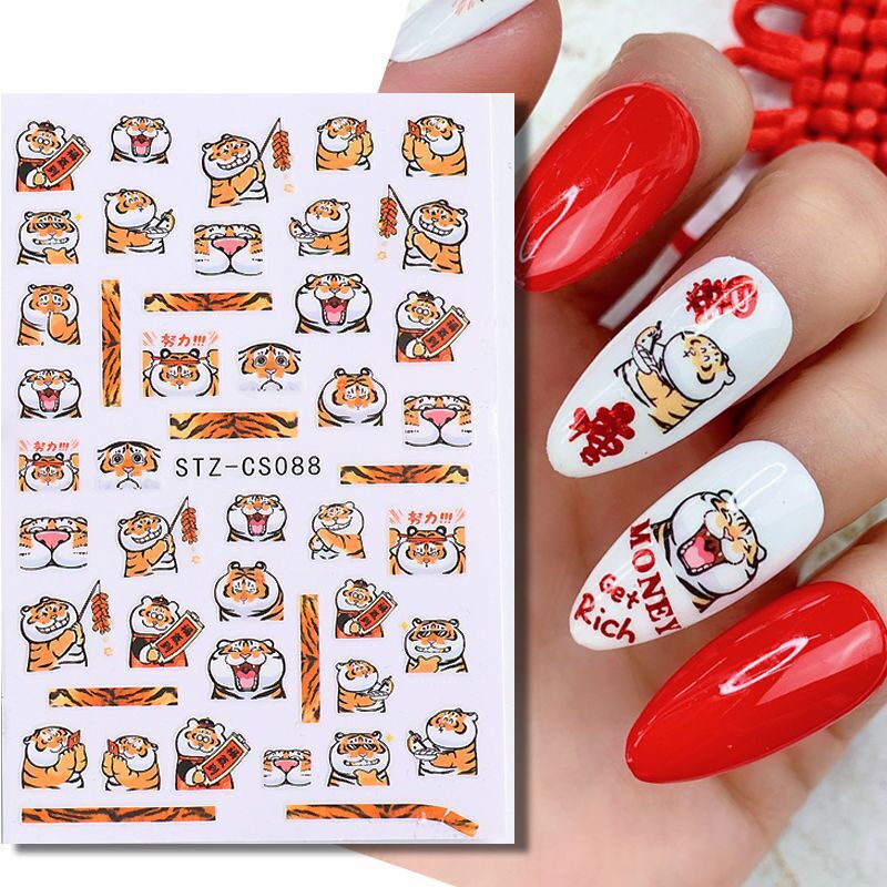 2022 호랑이의 해 새로운 네일 아트 스티커 블루 불꽃 체스 판 스마일 인상파 페인팅 라인 백 접착 스티커스토어 가기