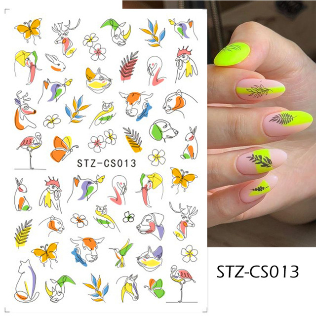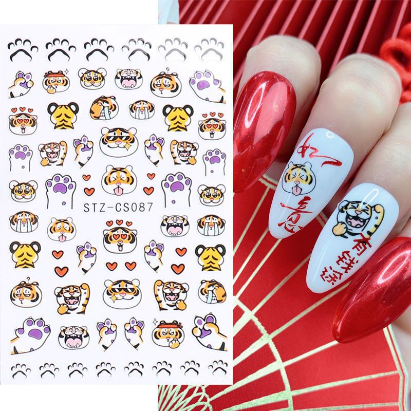 2022 호랑이의 해 새로운 네일 아트 스티커 블루 불꽃 체스 판 스마일 인상파 페인팅 라인 백 접착 스티커