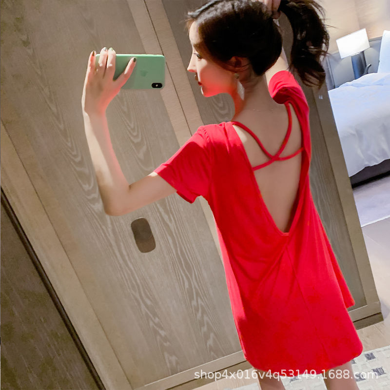 단색 섹시한 잠옷 여자의 여름 얇은 2021 새로운 등이없는 슬링 가정 옷 순수한 욕망 개인 잠옷스토어 가기