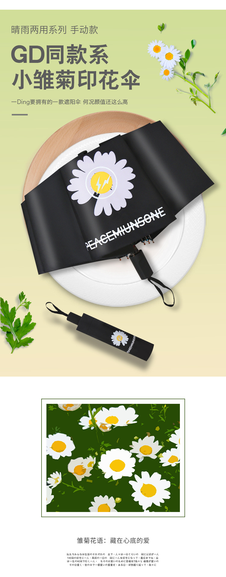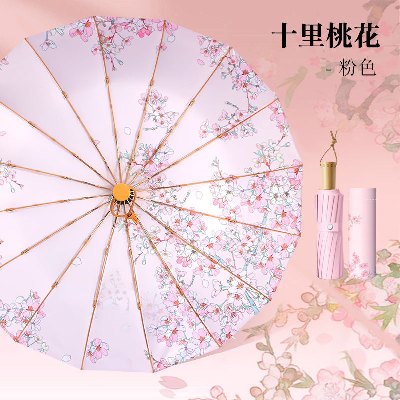 신선한 과일 우산 학생 접이식 자외선 차단 썬 차양 여성용 이중 사용 태양 우산 접이식 도매스토어 가기
