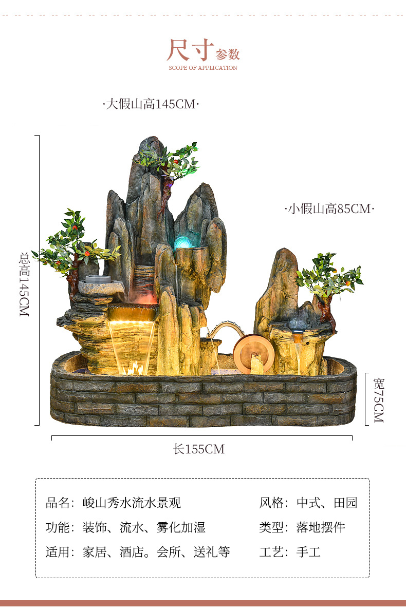 목가적 인 rockery 가정 인테리어 장식 대형 흐르는 물 분수 복 풍수 개방 층 안뜰 대형 장식품스토어 가기