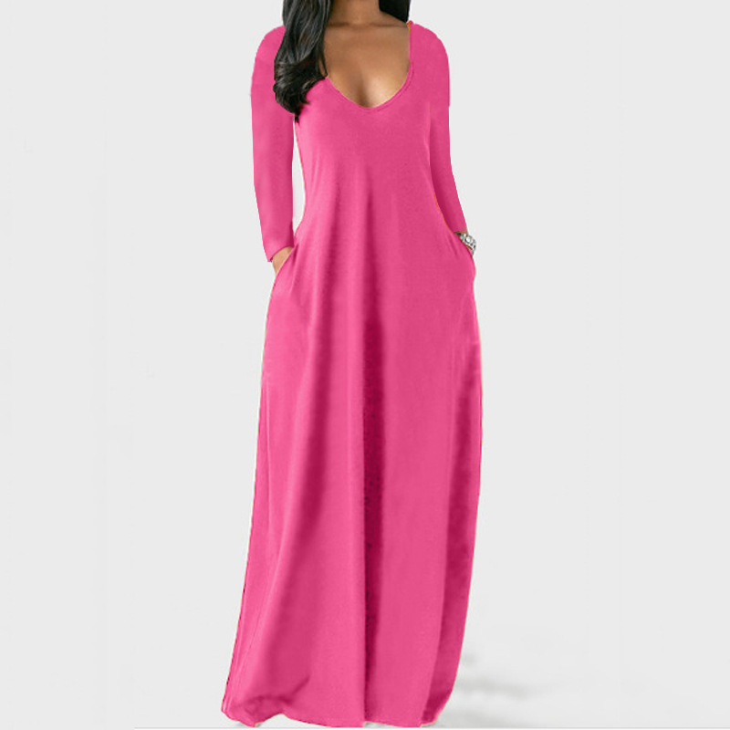 2023 유럽과 미국 여름 크로스 국경 대외 무역 새로운 플러스 사이즈 여성의 단색 원피스 섹시 깊은 V 긴 소매 원피스스토어 가기