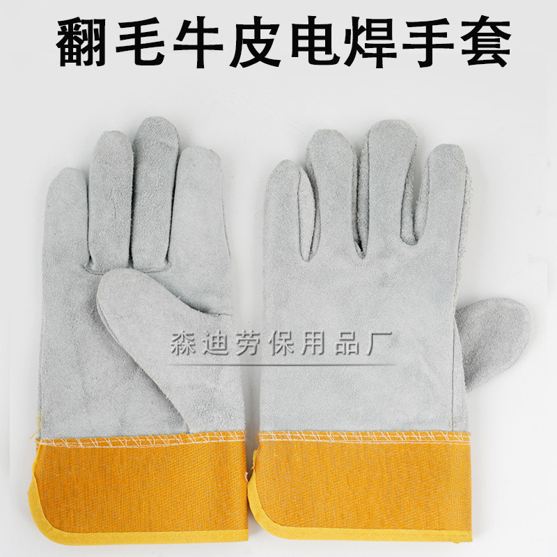 2 층 소가죽 용접기 장갑 두꺼운 스웨이드 소가죽 내마모성 미끄럼 방지 단열 노동 보호 용접 장갑