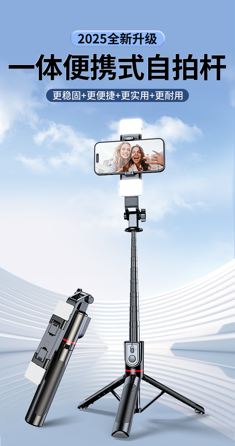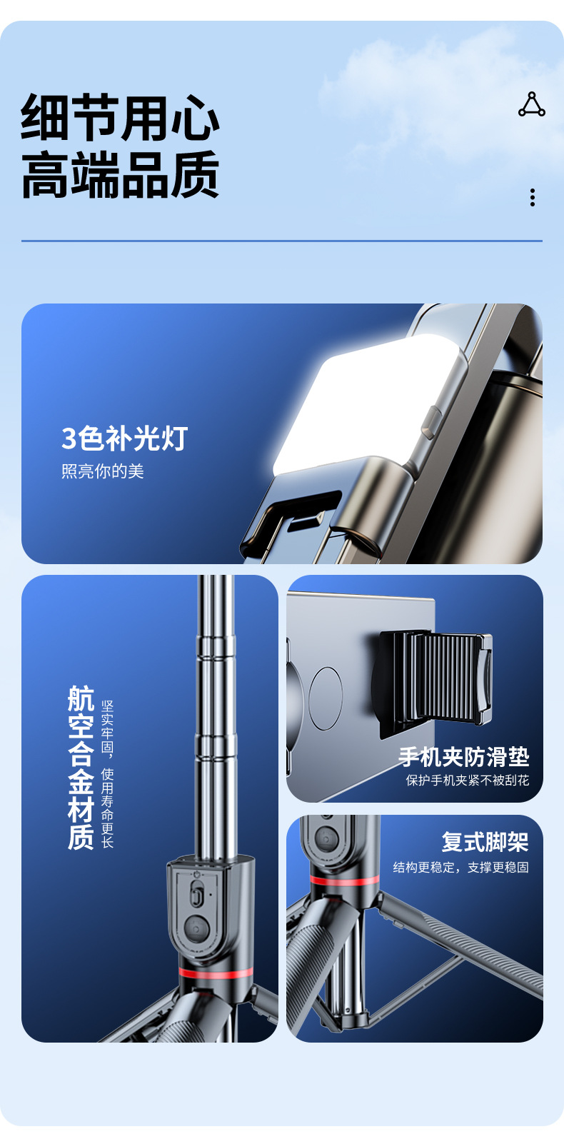 국경 간 미니 셀카 스틱 블루투스 확장 필 라이트 휴대 전화 라이브 방송 브래킷 통합 텔레스코픽 삼각대 도매