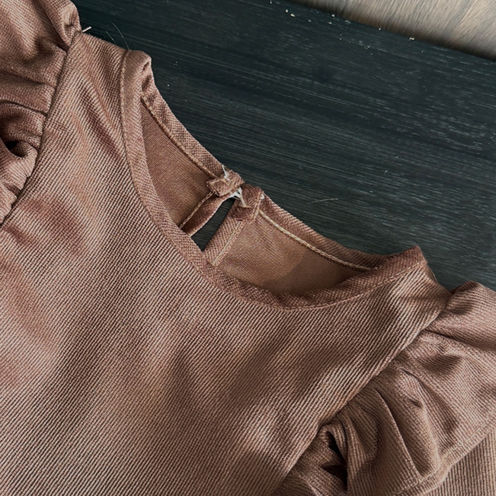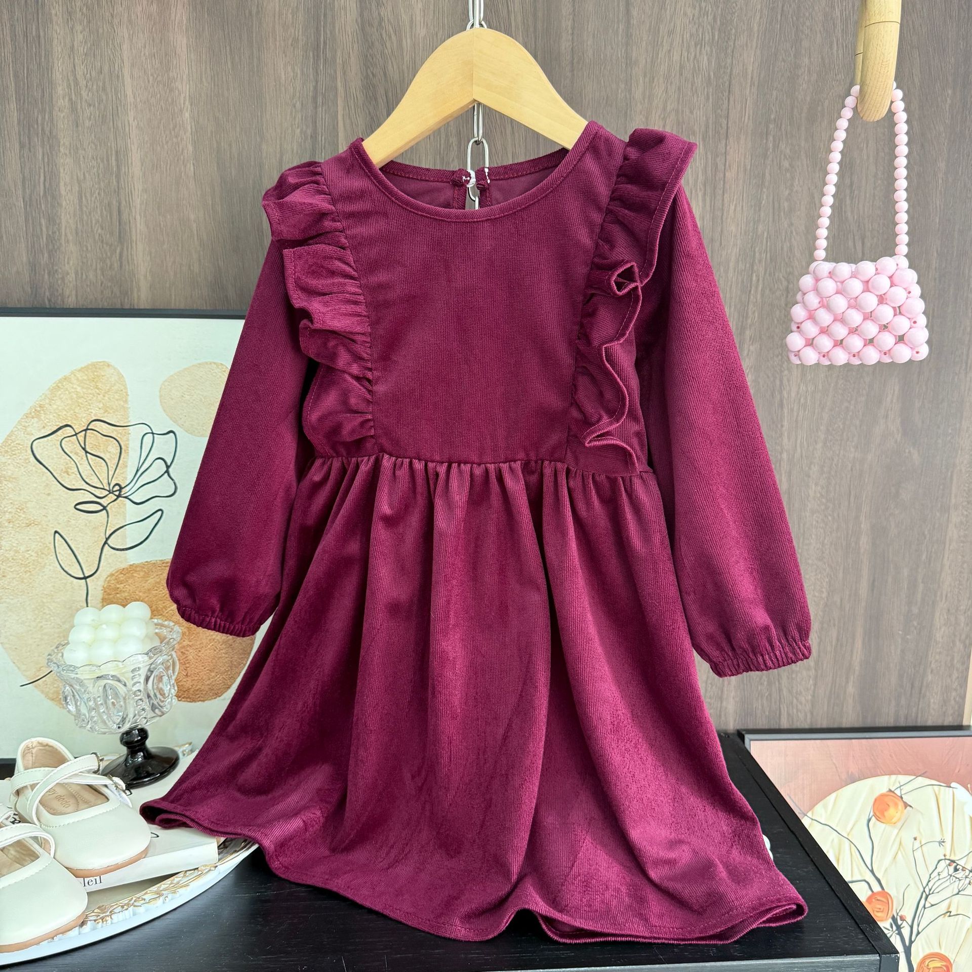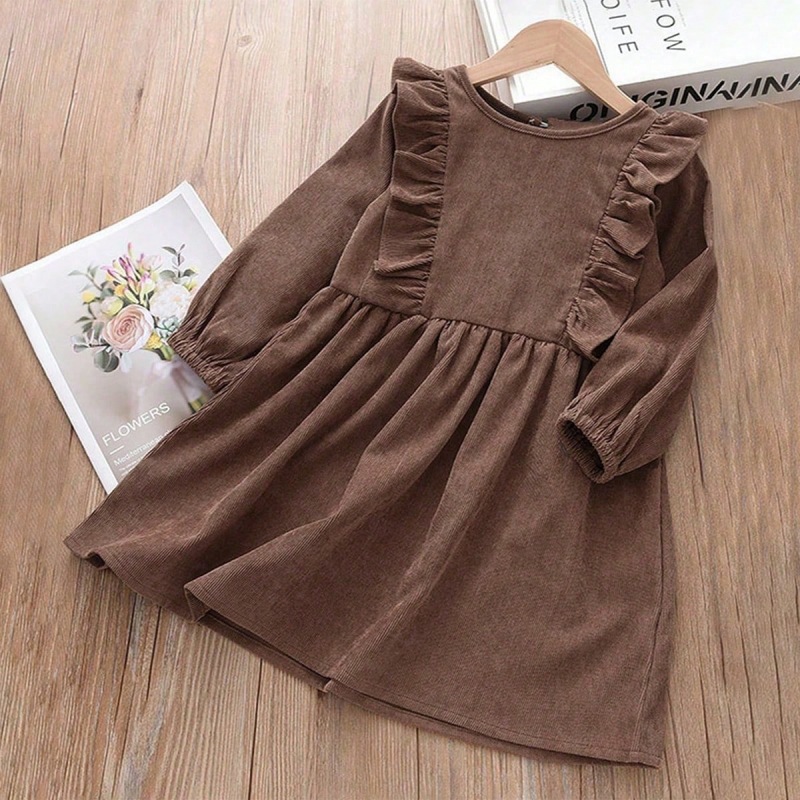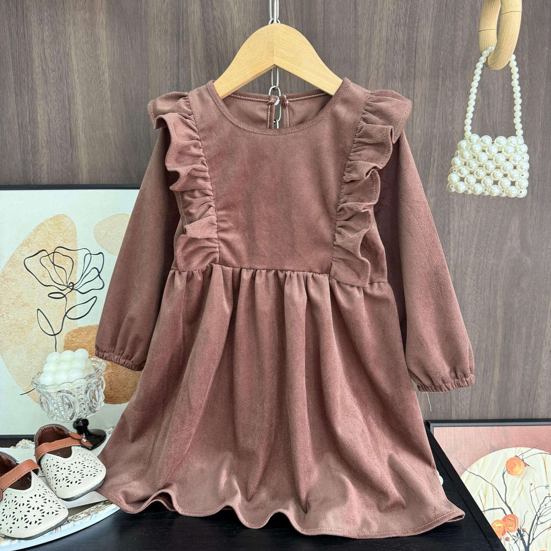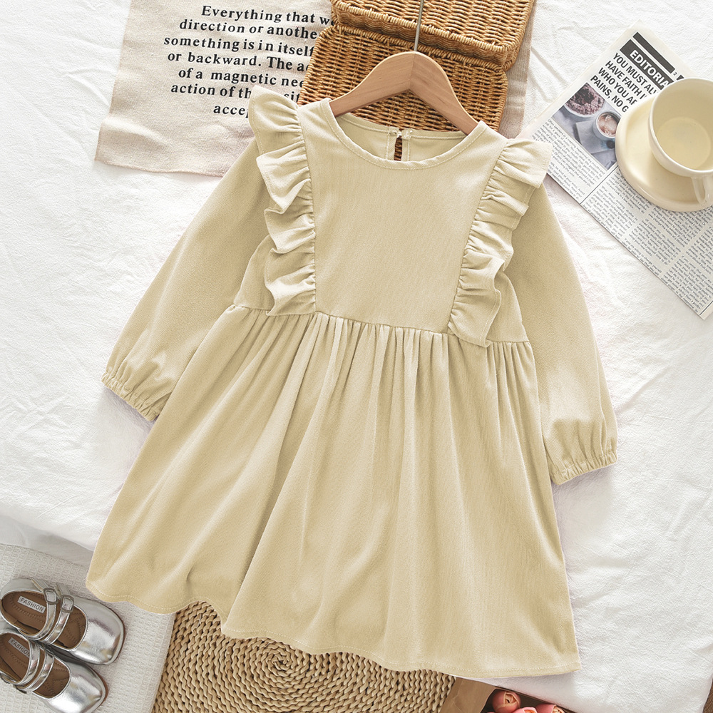 크로스-국경 소녀 원피스 아기 가을 새로운 라운드 목 귀 긴 소매 원피스 단색 코듀로이 원피스 대외 무역스토어 가기