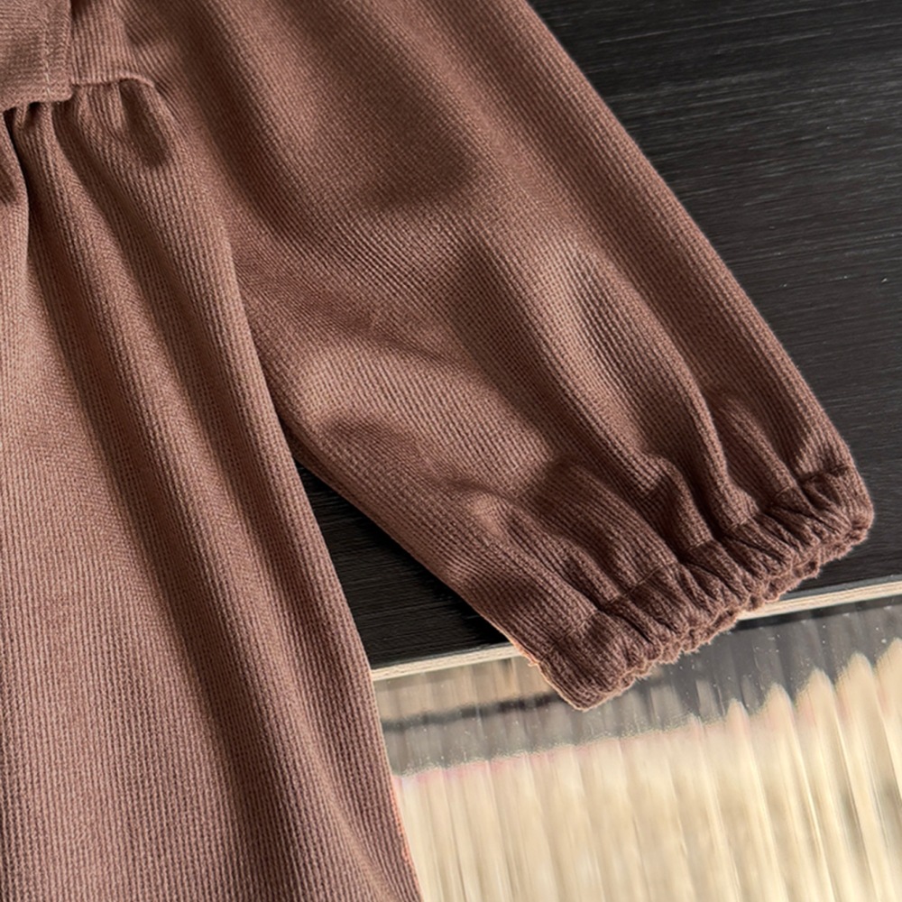 크로스-국경 소녀 원피스 아기 가을 새로운 라운드 목 귀 긴 소매 원피스 단색 코듀로이 원피스 대외 무역