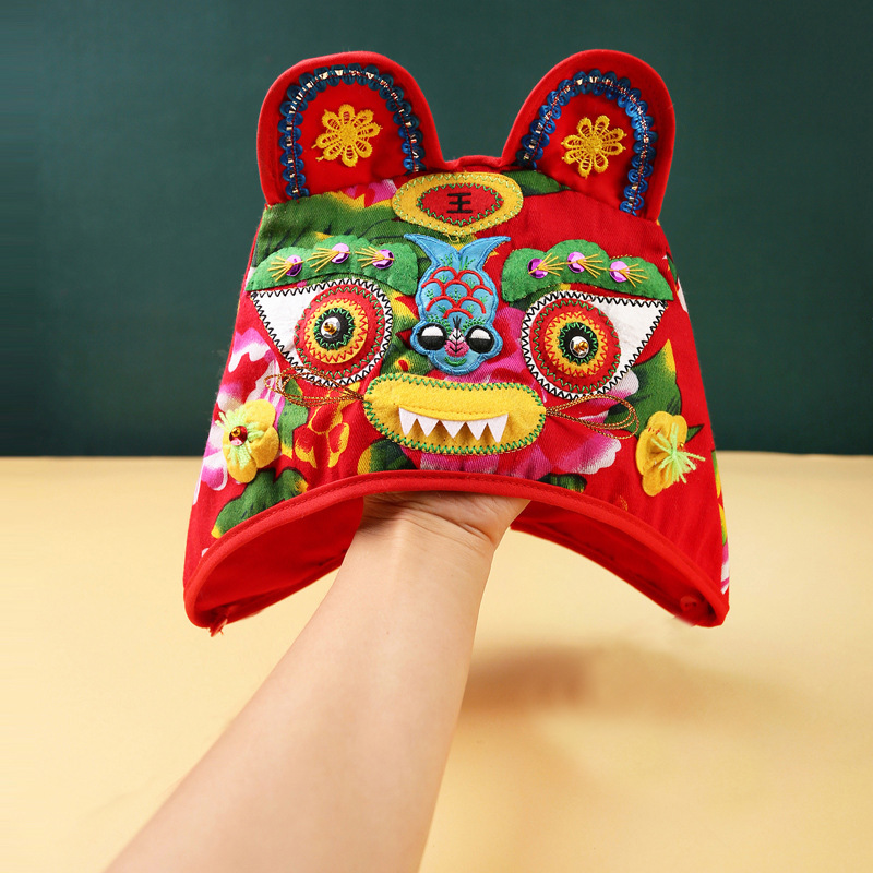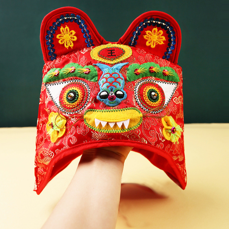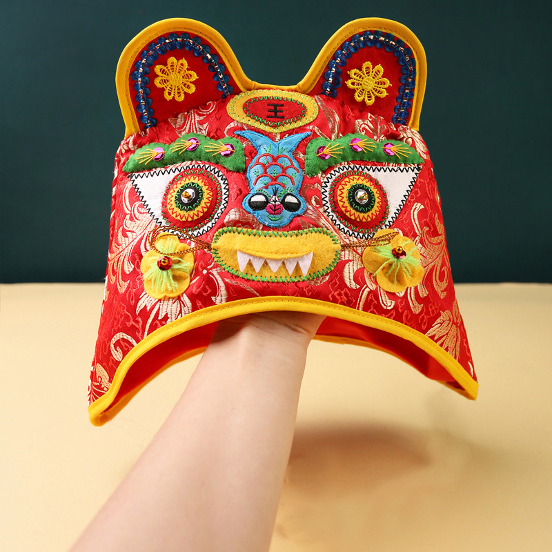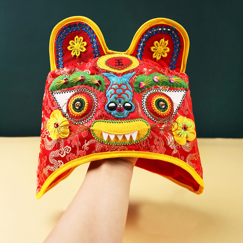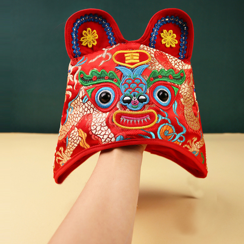 호랑이 머리 모자 아기 모자 새로운 봄과 가을 아기 모자 중국 스타일 자수 보름달 백일 생일 연회 와인 사진스토어 가기