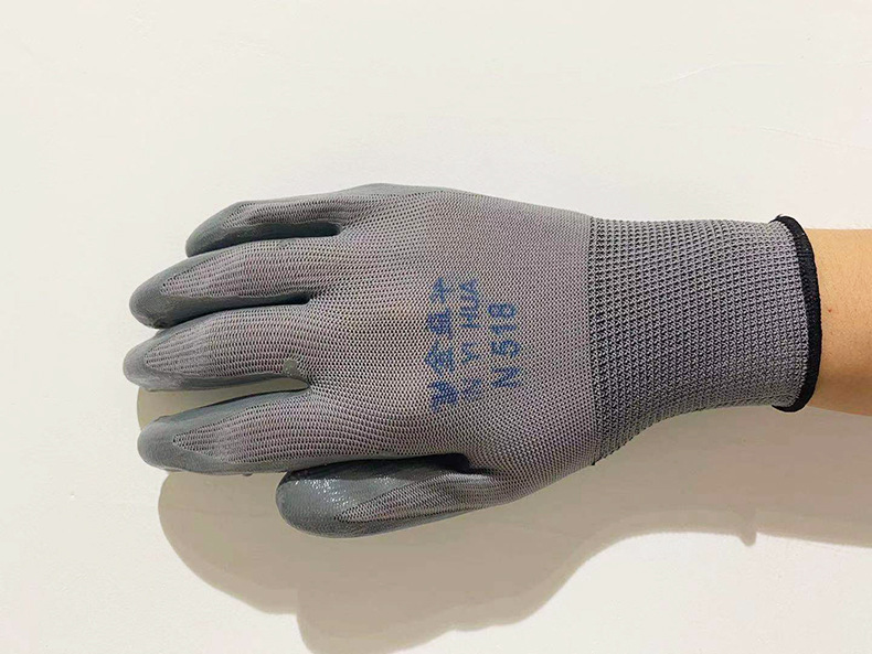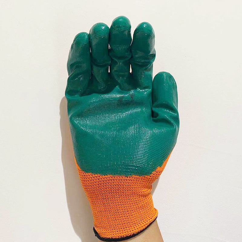 블랙 니트릴 담근 보호 장갑 블랙 나일론 딩 청 담근 두꺼운 교수형 고무 코팅 노동 보호 장갑 도매