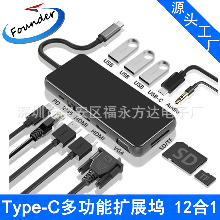 MST 멀티 스크린 디스플레이 타입을 USB-C 12-in-one 확장 독-c 허브 듀얼 HDMI + VGA 다기능 허브