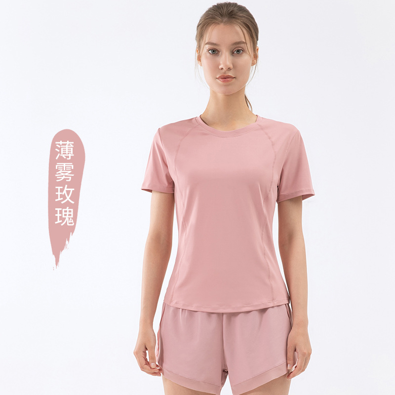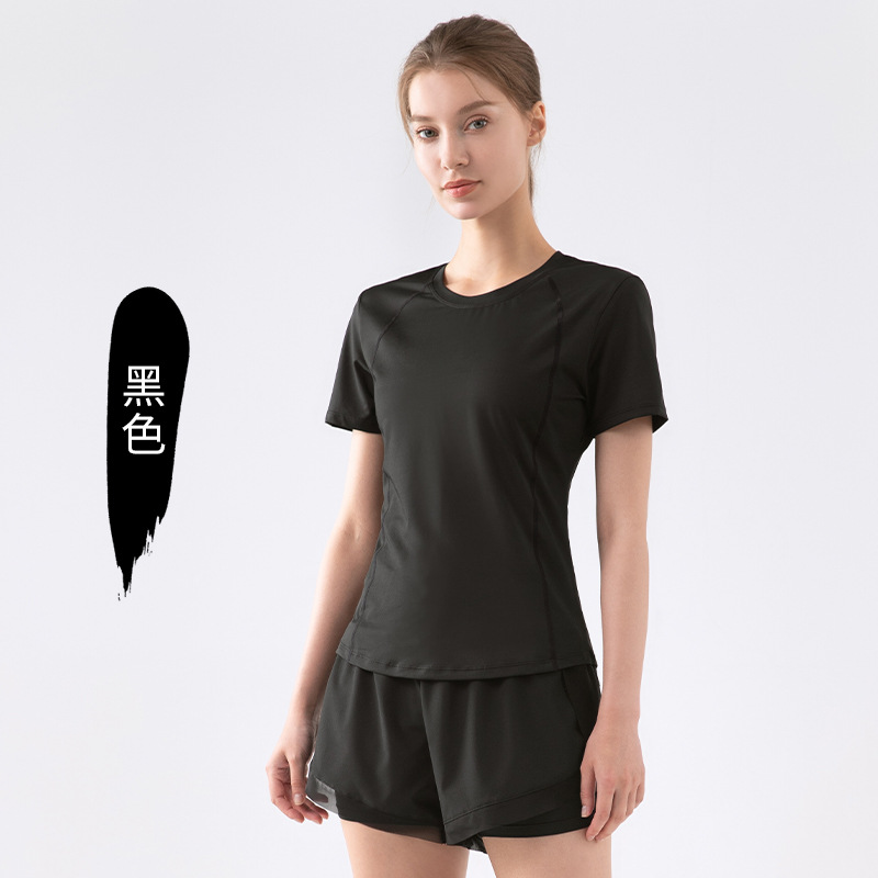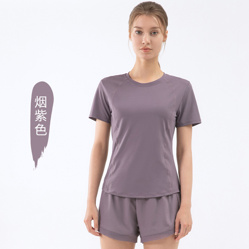 봄과 여름을위한 유럽 및 미국 요가 의류 여성용 스포츠 러닝 피트니스 의류 방적사 반팔 티셔츠 슬림핏 슬리밍 요가 의류 탑