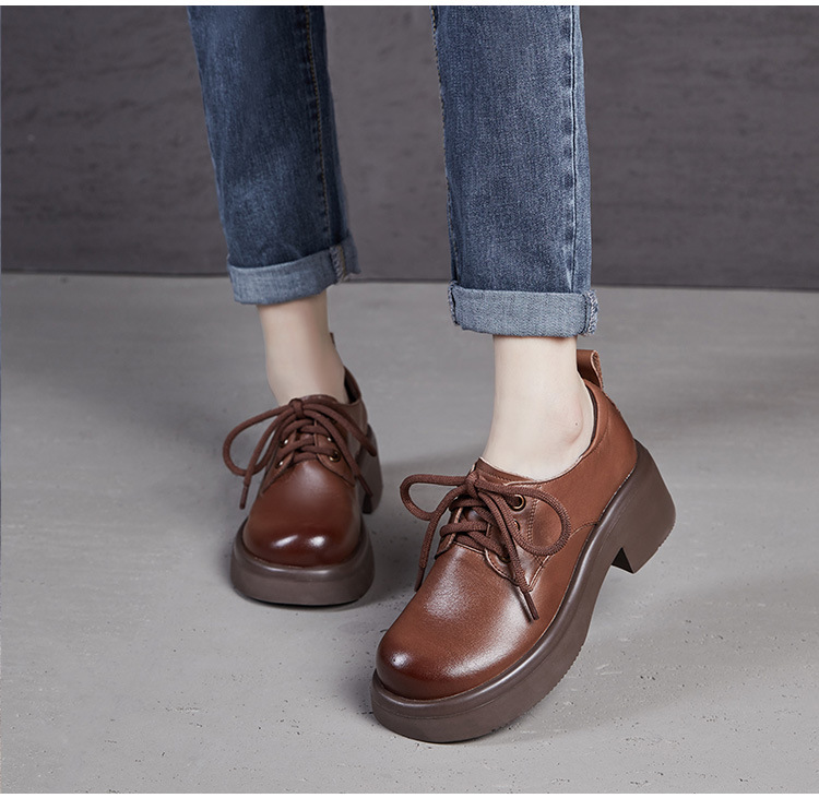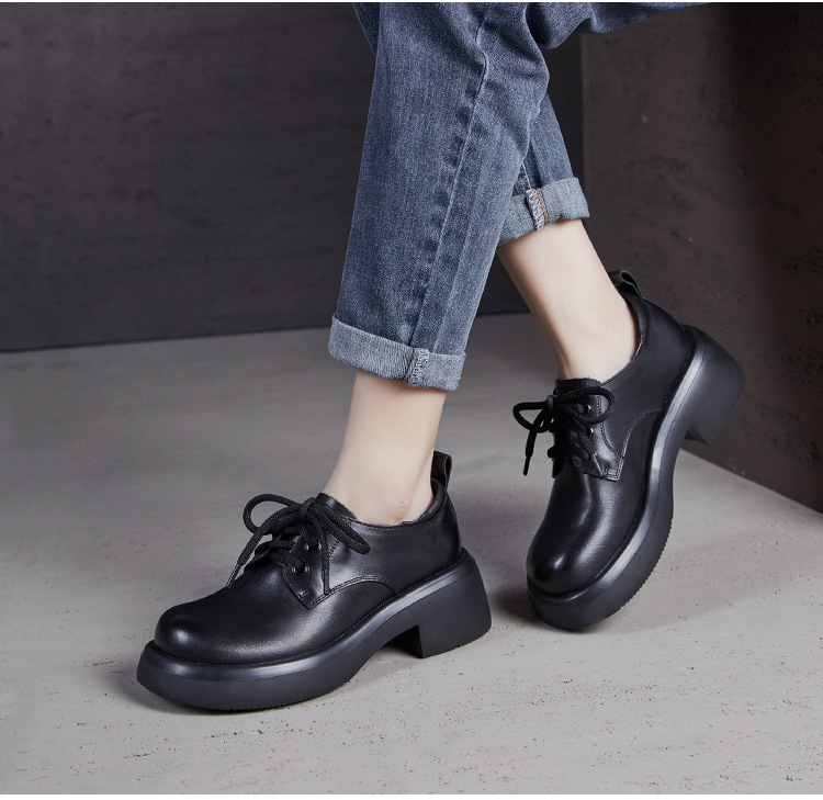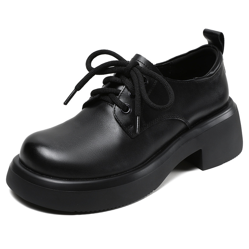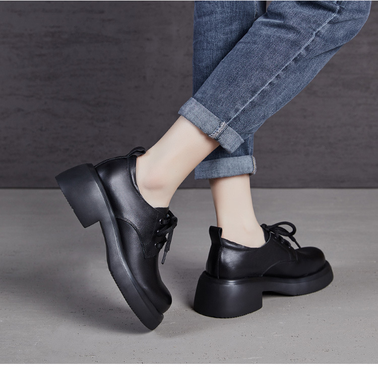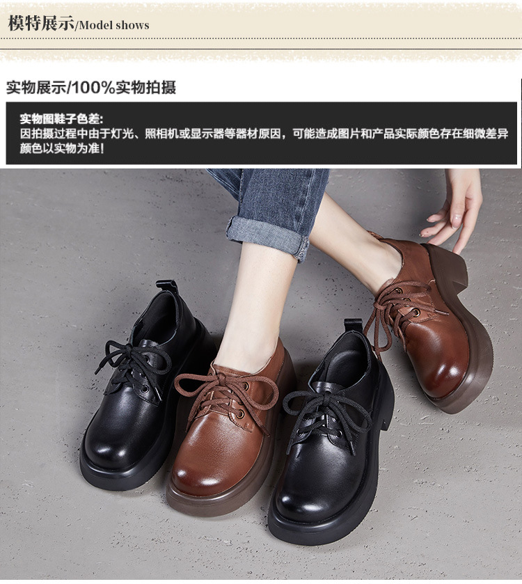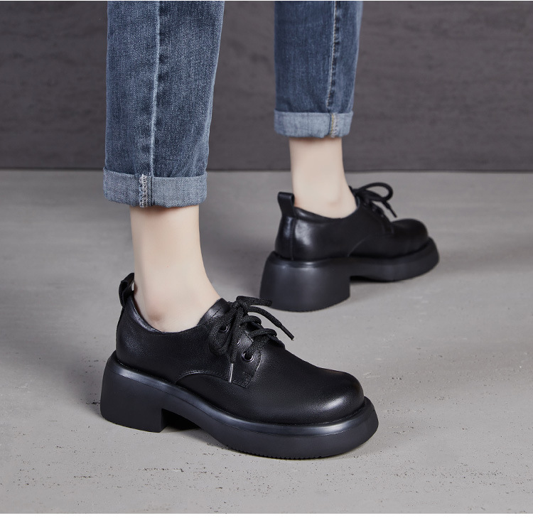 2025년 가을 신상 키높이 캐주얼 다용도 영국풍 천연 소가죽 끈 단화 두꺼운 밑창 플랫폼 슈즈 여성용스토어 가기