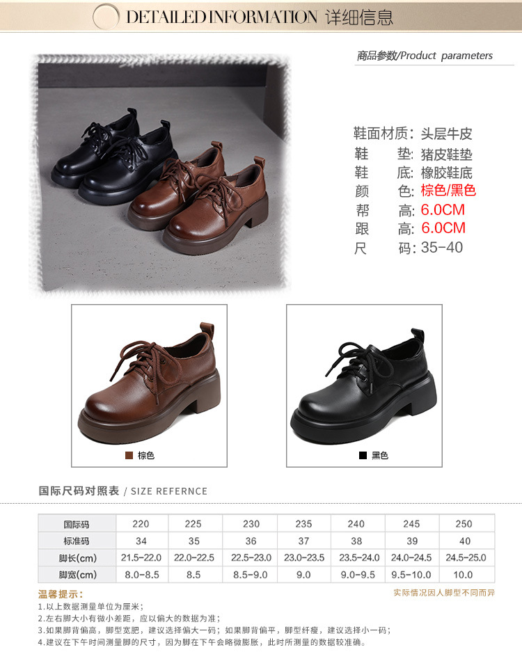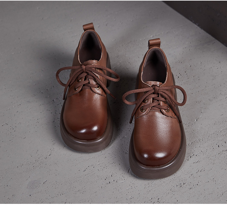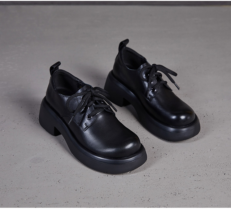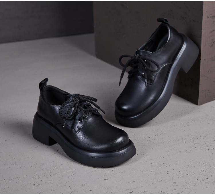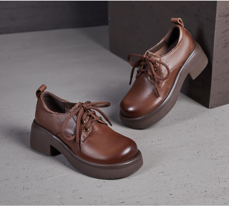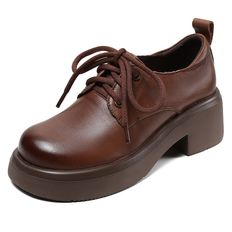 2025년 가을 신상 키높이 캐주얼 다용도 영국풍 천연 소가죽 끈 단화 두꺼운 밑창 플랫폼 슈즈 여성용스토어 가기